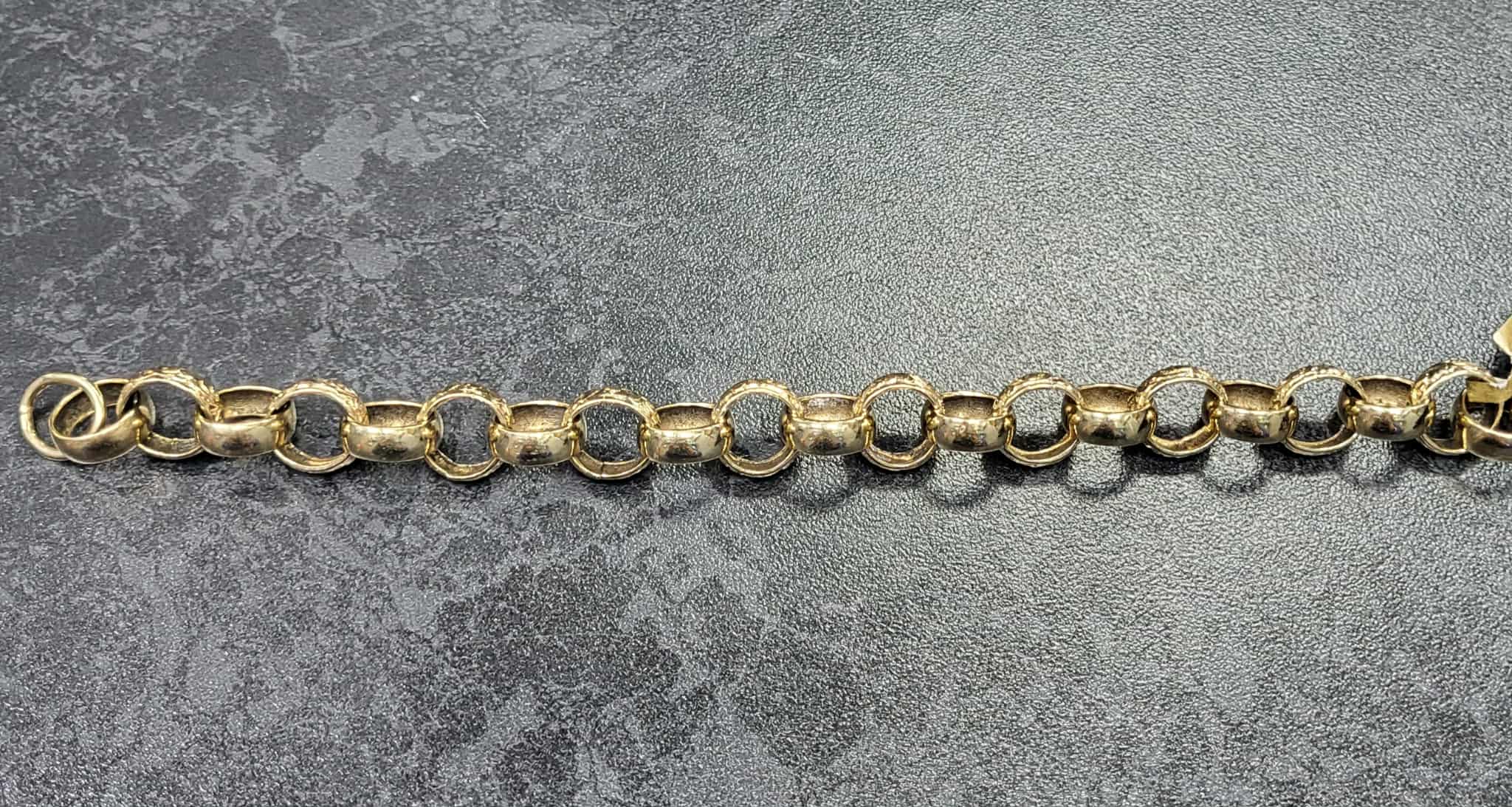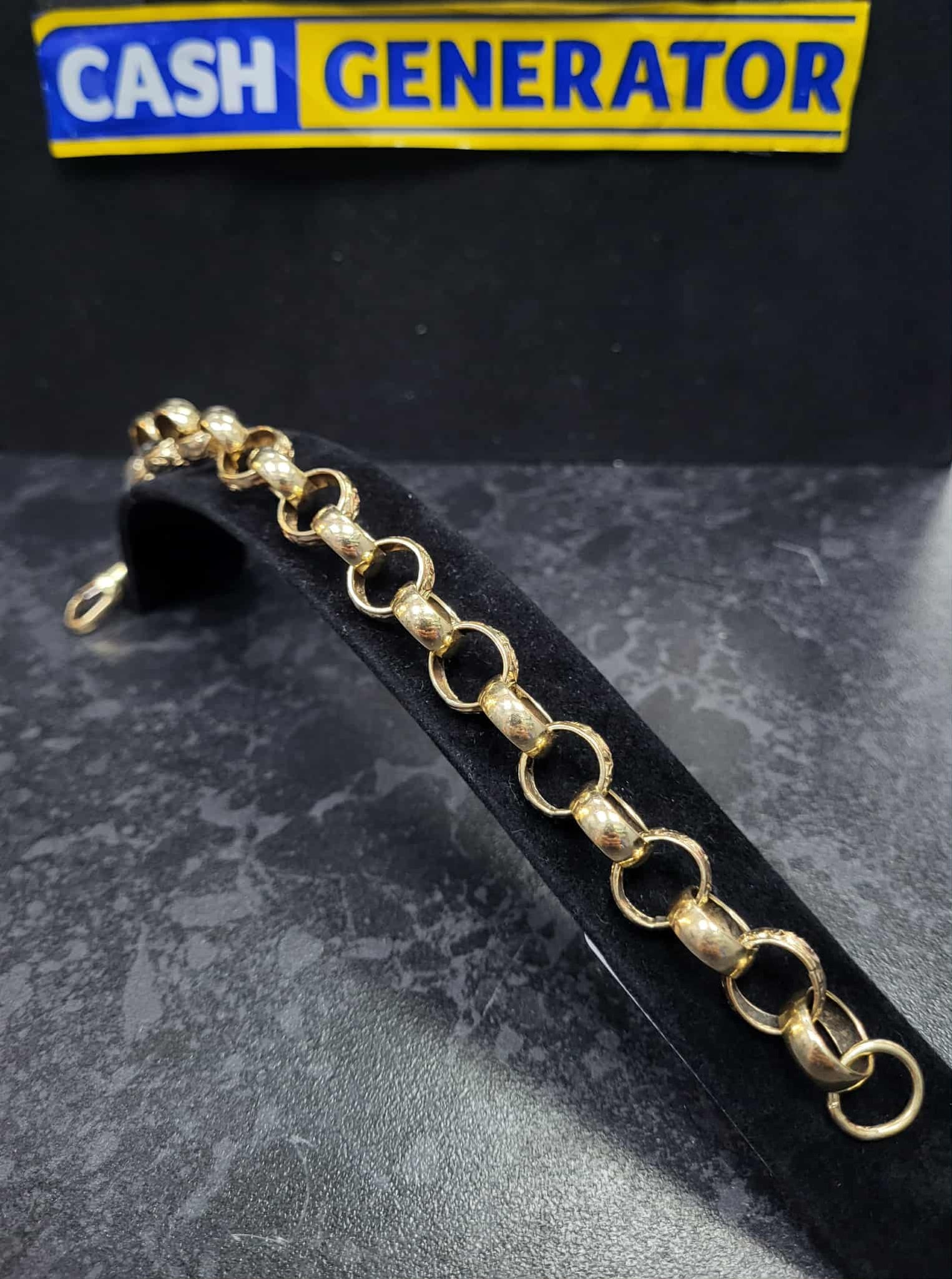 A 9ct gold belcher bracelet that weighs 22.29g. Bracelet is in pristine condition, cleaned and polished.
