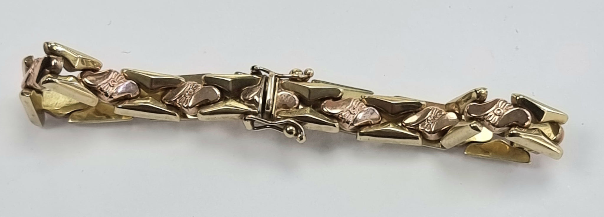 A stunning bracelet in yellow and rose gold 7.5 inches long weighing 13.25 grams
