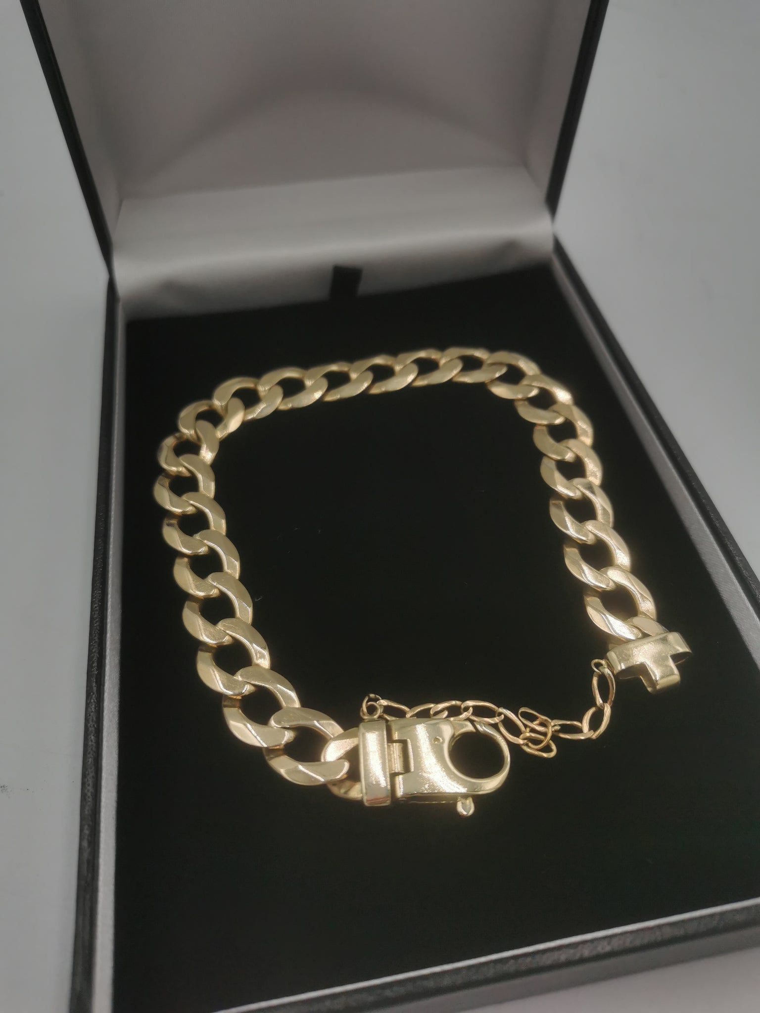9K Solid Gold Curb Bracelet 47,17Grams, 375 Hallmarked, Length: 10" Length, Box Provided, Large Links