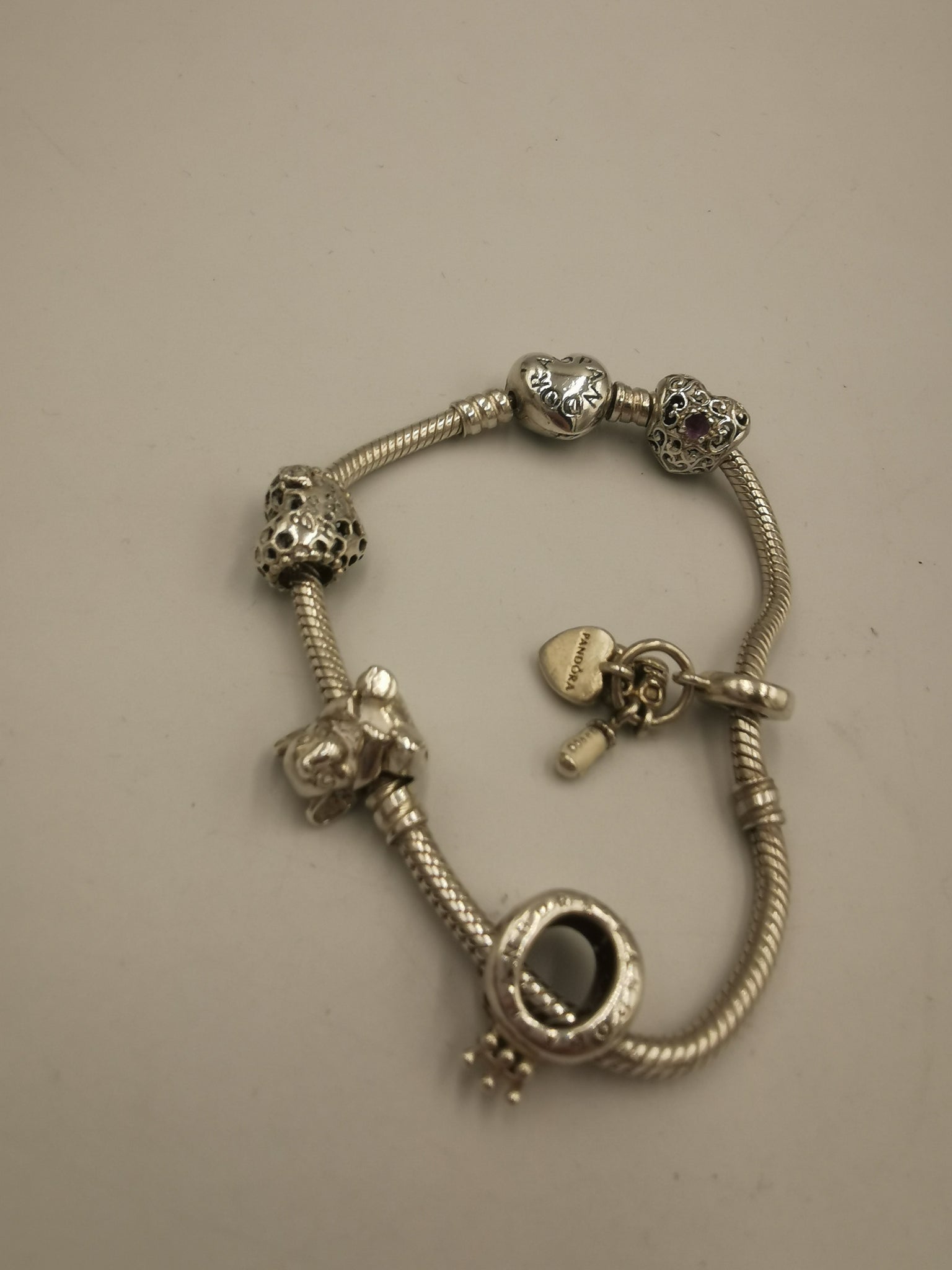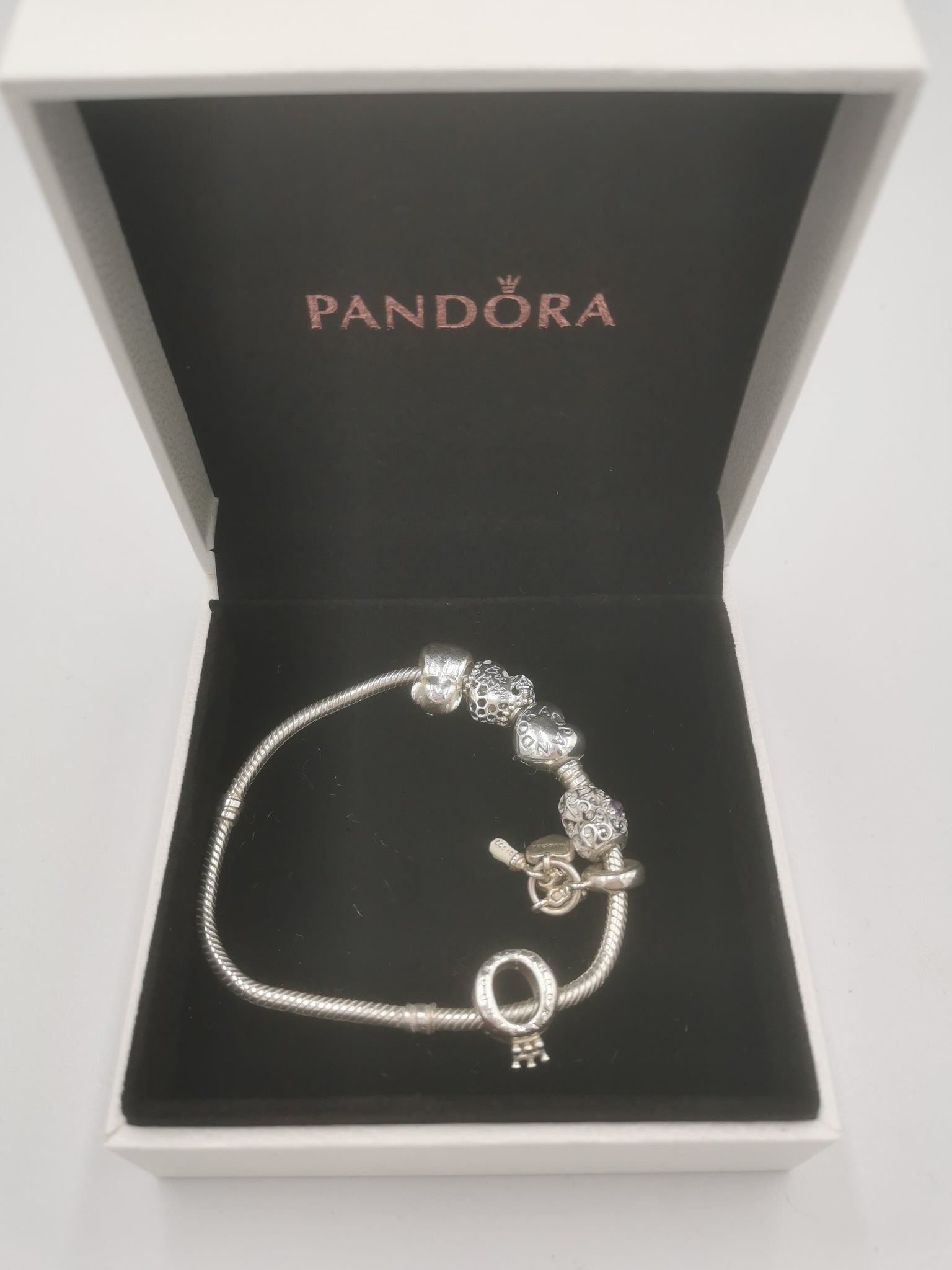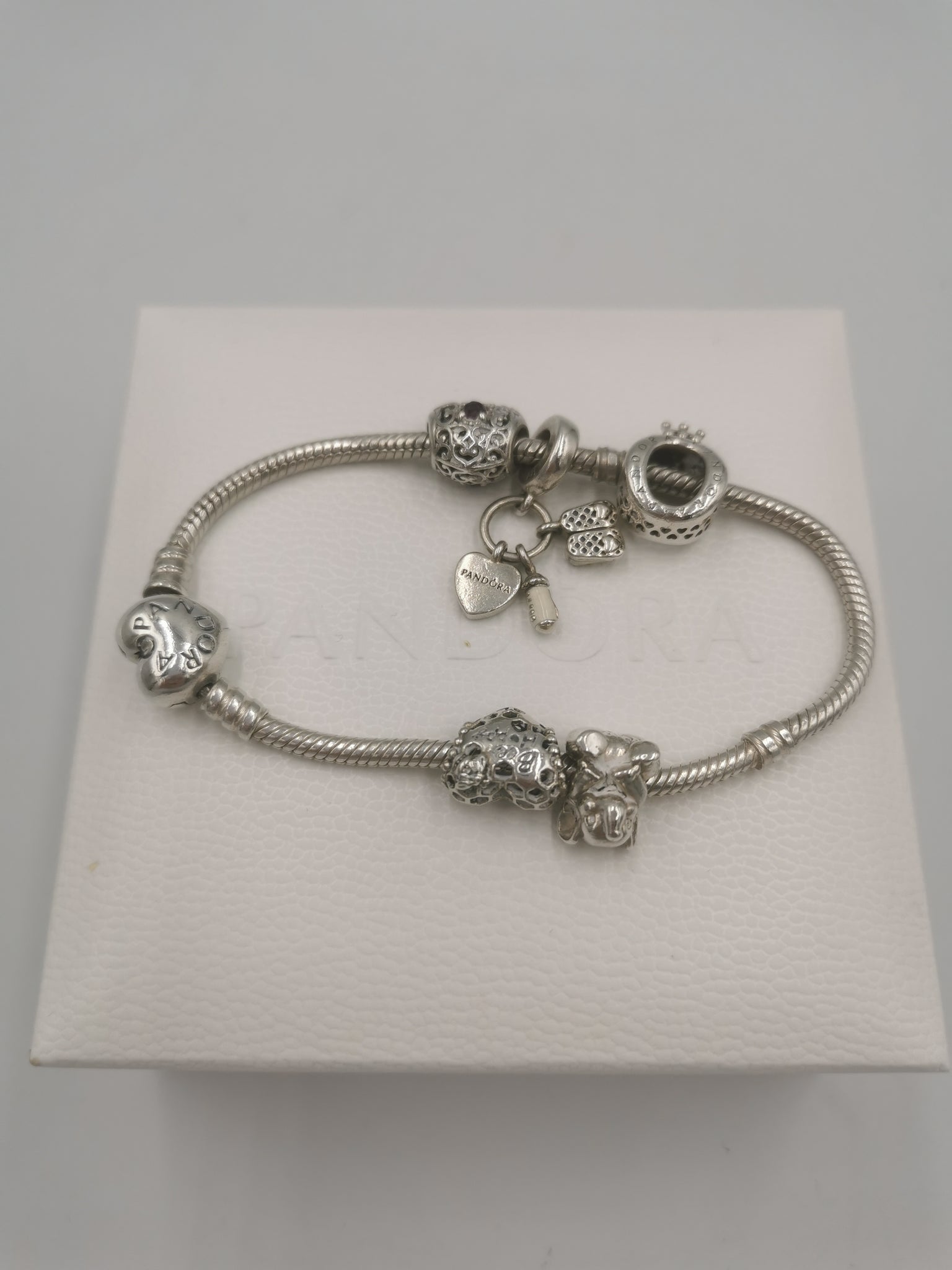 Pandora Bracelet With 5 Charms ( 925 ALE) With Pandora Box. SILVER.