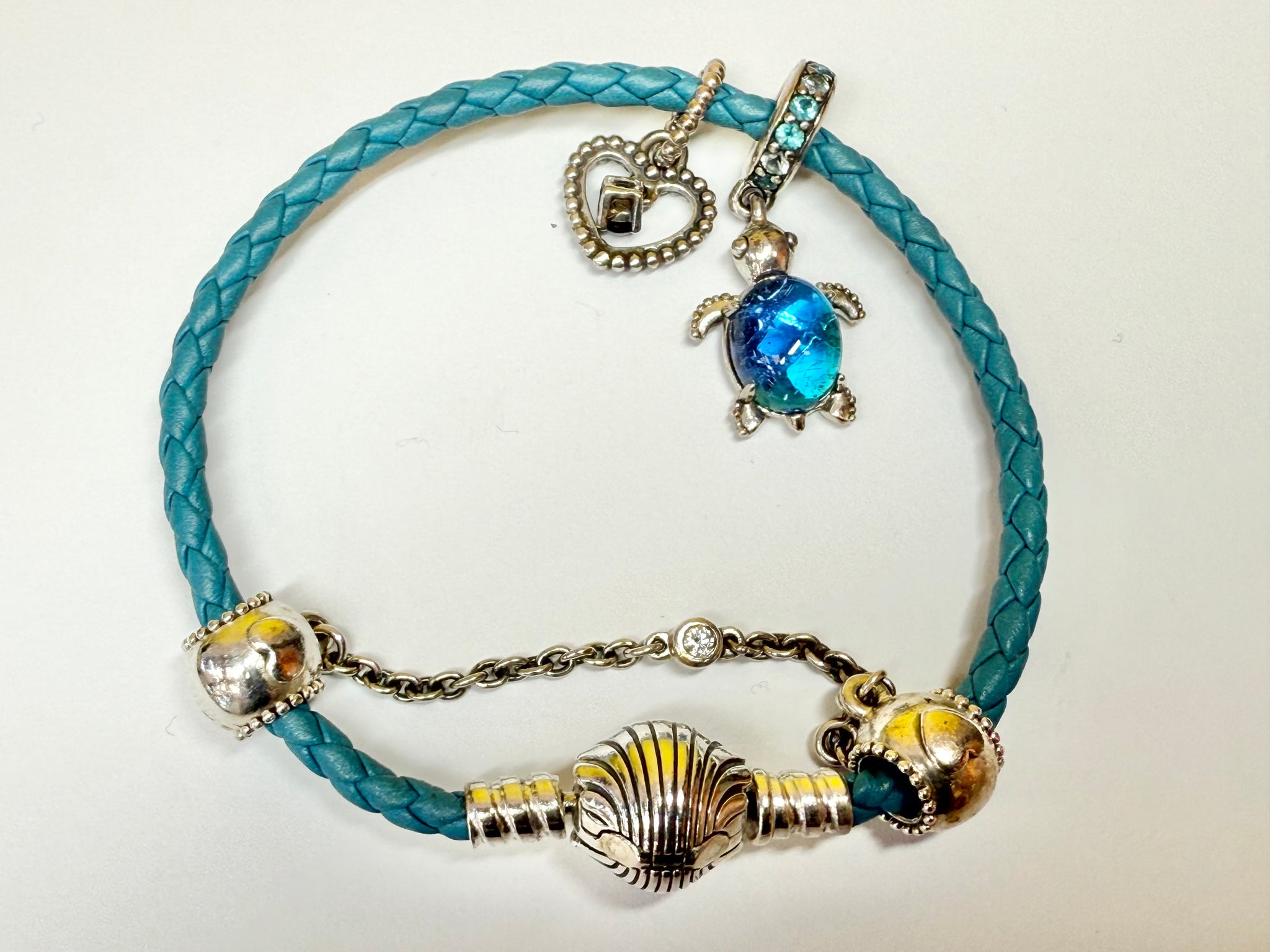 Pandora Moments Seashell Clasp Braided Leather Bracelet