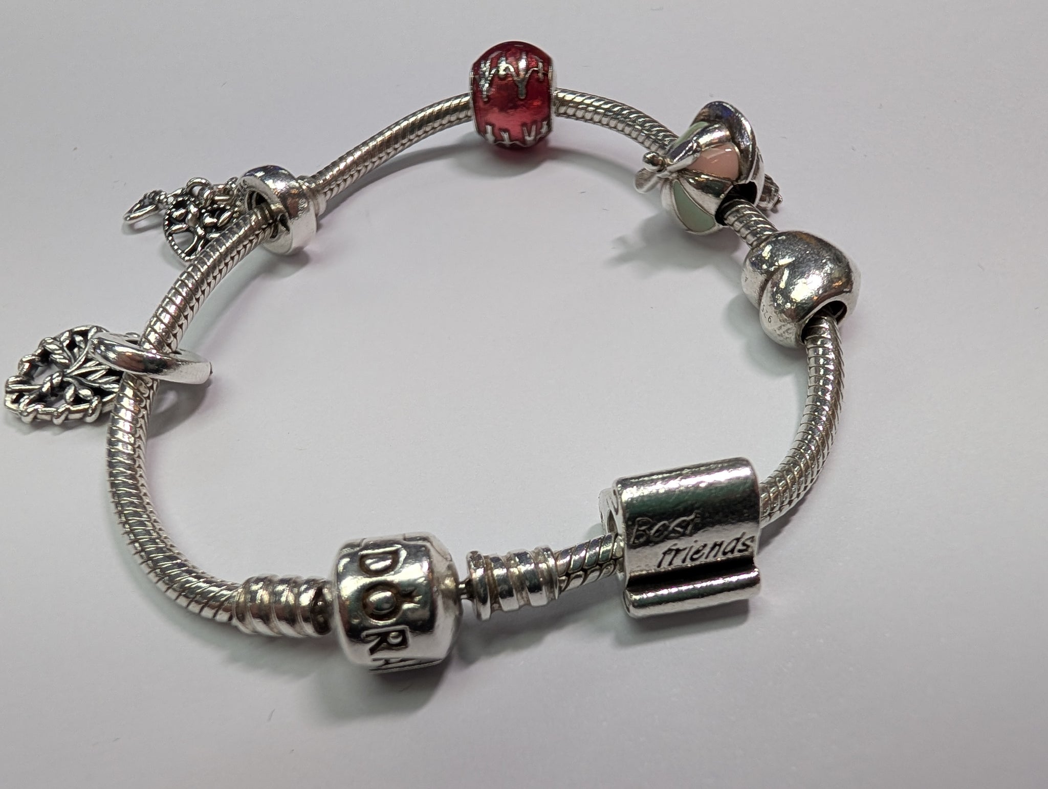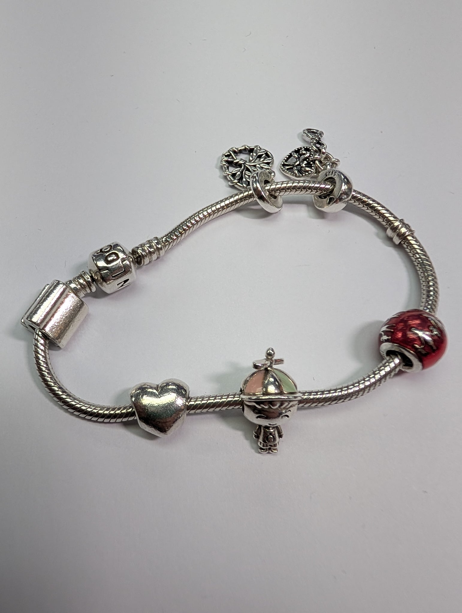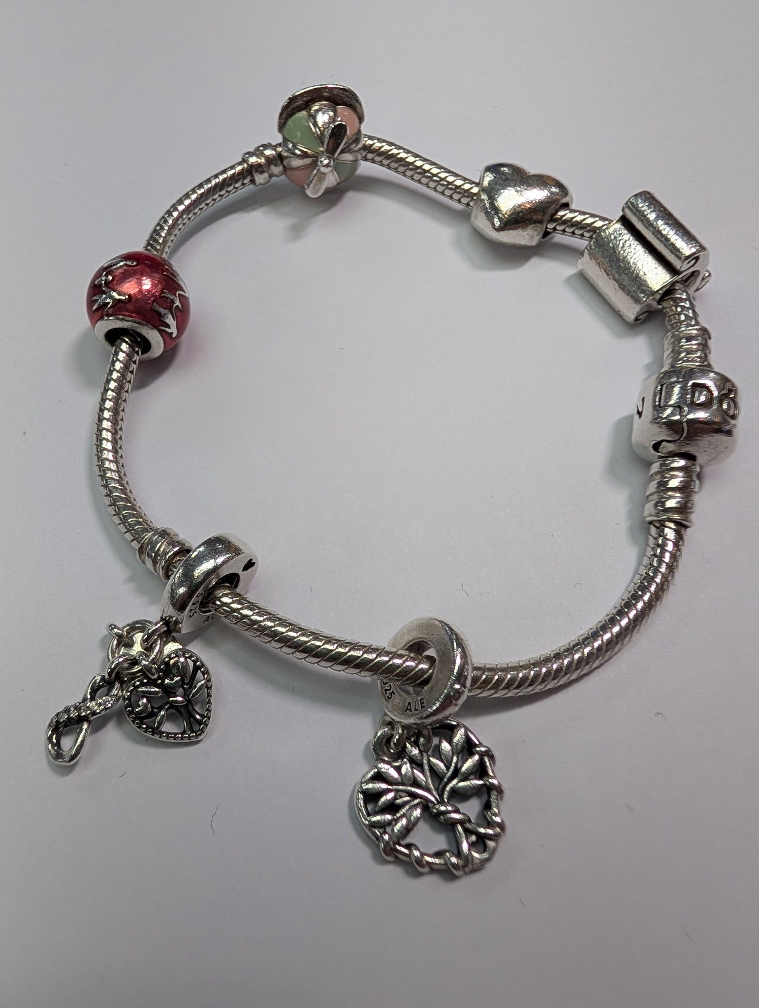 HERE WE HAVE A SILVER PANDORA CHARM BRACELET WITH CHARMS. THIS IS IN GOOD CONDITION AND COMES UNBOXED. ** FOR ANY QUERIES PLEASE CALL OUR PRESTON STORE DIRECT MON-SAT 01772 204889