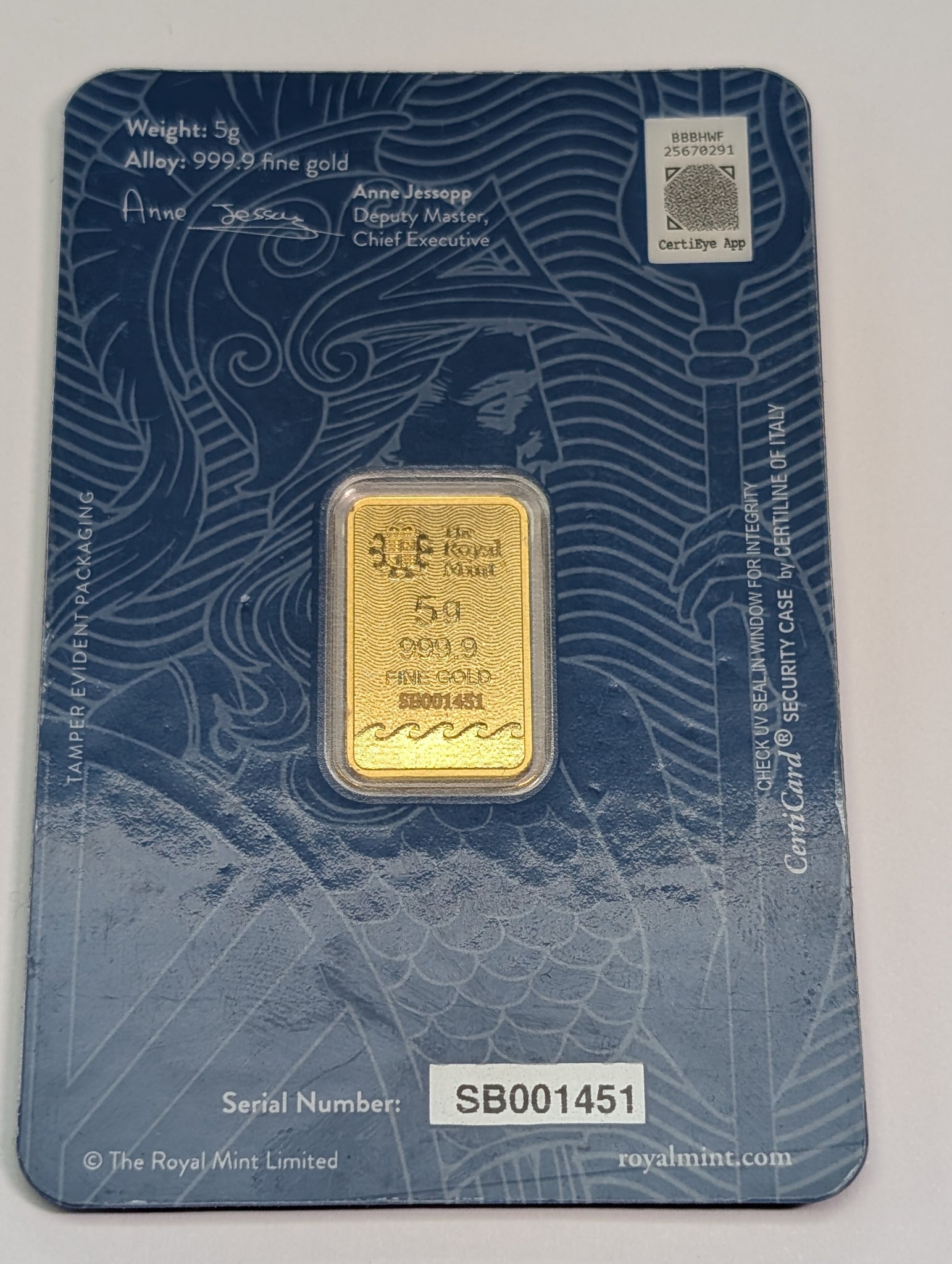 HERE WE HAVE A SEALED BRITANNIA 5G OF FINE GOLD BAR BY THE ROYAL MINT. ** FOR ANY QUERIES PLEASE CALL OUR PRESTON STORE DIRECT MON-SAT 01772 204899
