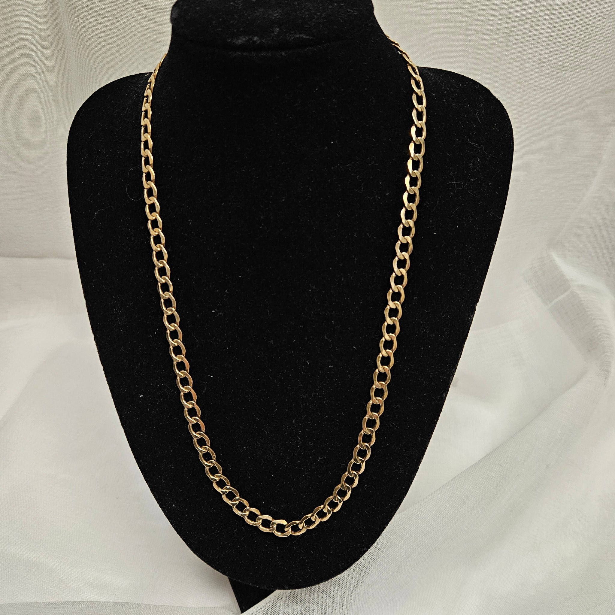 This stunning 20" Curb chain is set in 9ct yellow gold and is a total weight of 9.5g. Will be sent tracked via Royal Mail and will come in a gift box.