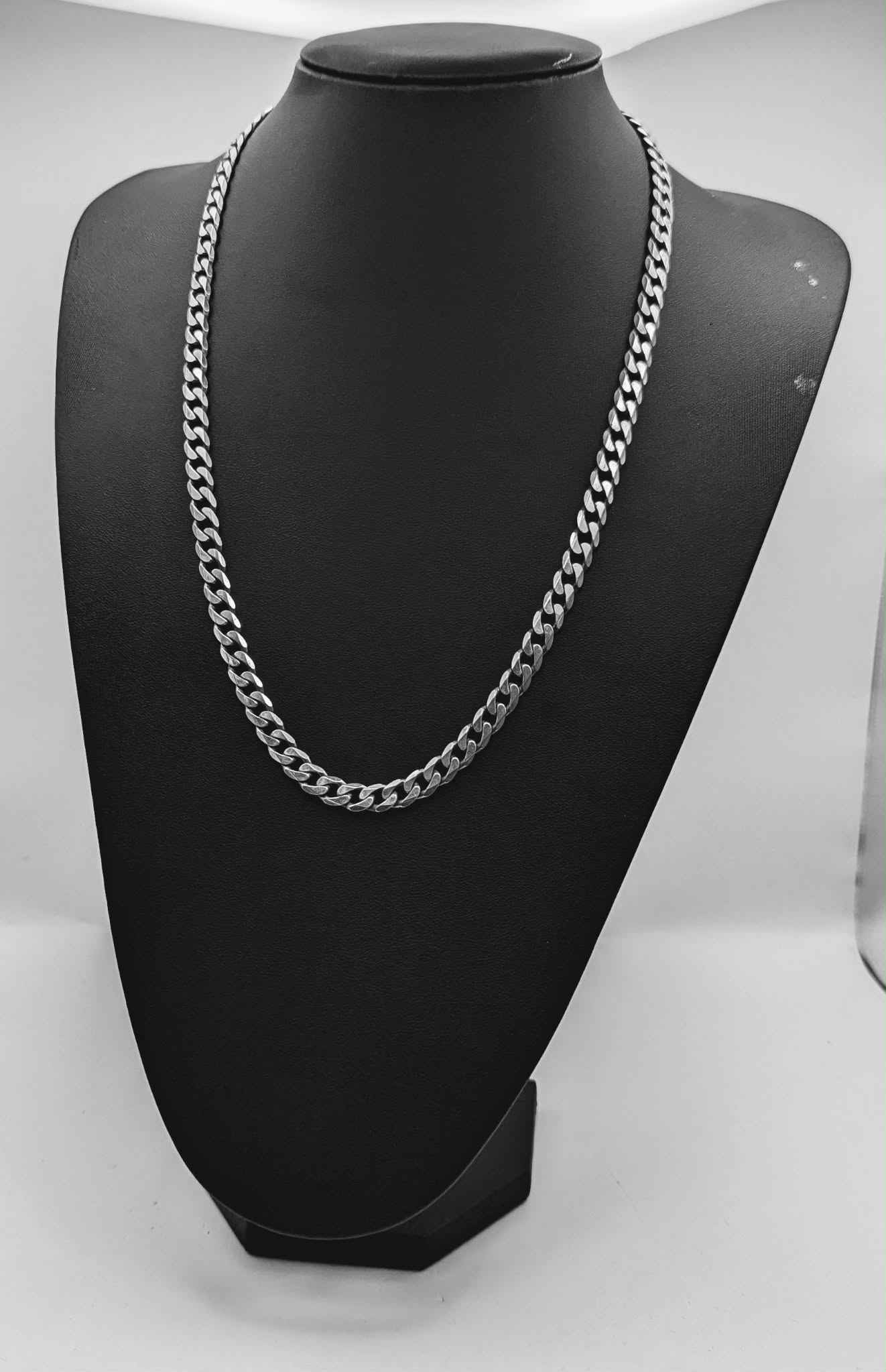 925 Hallmarked Silver, Curbed Chain With Lobster lock, 24", 62.59g Item does have very light light marks as pre owned but hard to see at a slight distance, it full wearable condition with no warping to original shape, Please see photos Harpurhey Store