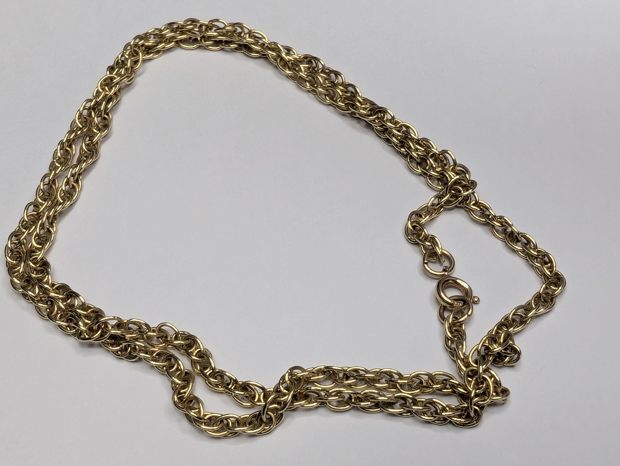 HERE WE HAVE A 9CT GOLD CHAIN HALLMARKED 375. THIS IS 20" LONG AND WEIGHS 8.93G ** FOR ANY QUERIES PLEASE CALL OUR CHORLEY STORE DIRECT MON-SAT 01257 752333