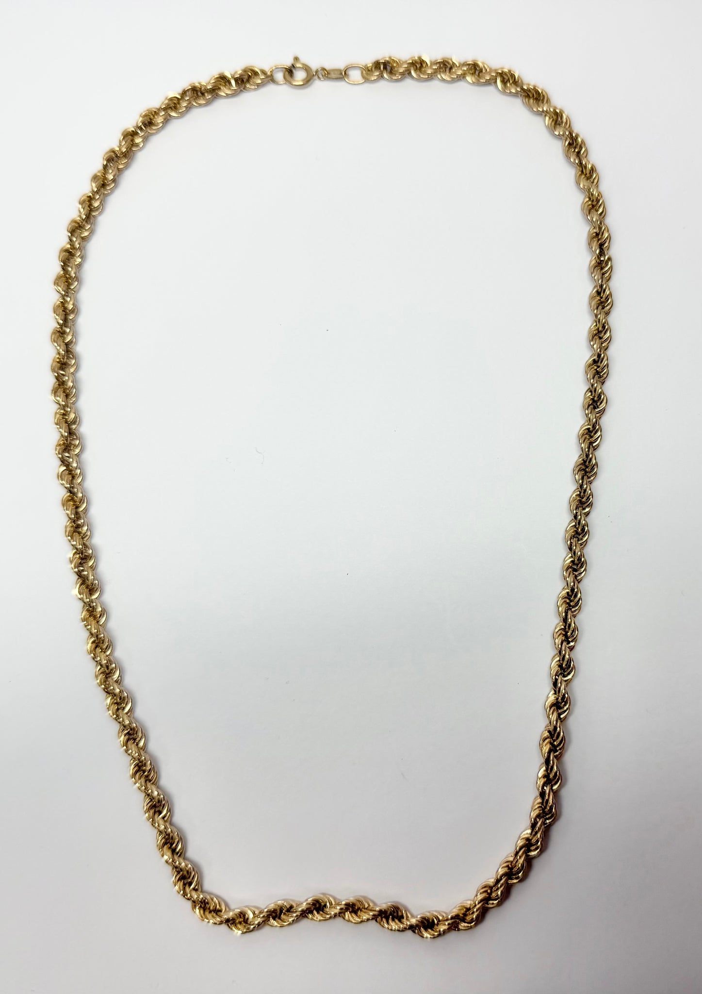 This 9ct gold rope chain is 18", weighs 14 grams and is in good condition