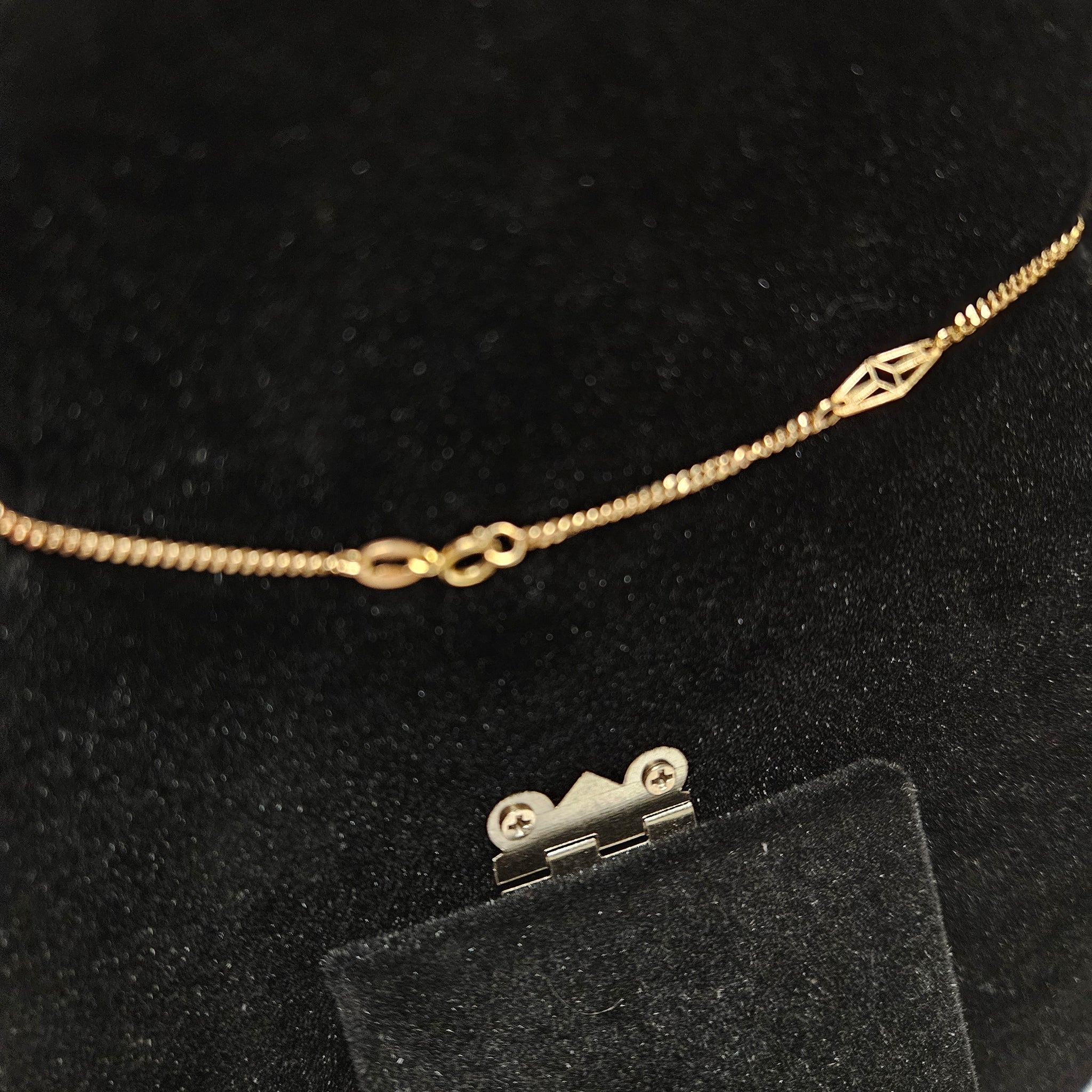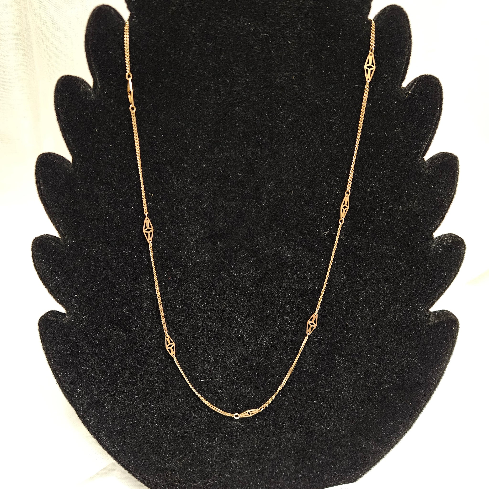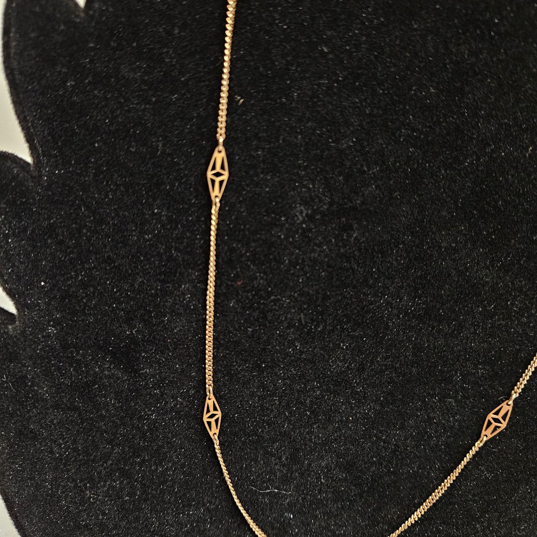 This yellow gold station necklace is set in 9ct and weighs 3.7g and is 19.5" in length.