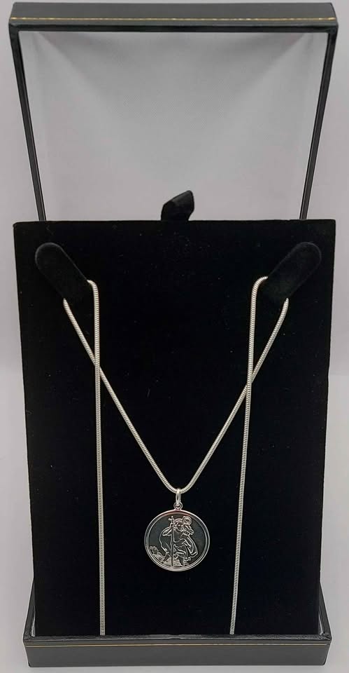 *BRAND NEW* 925 silver rope style chain 24" with ST CHRISTOPHER pendent 9.6g Boxed