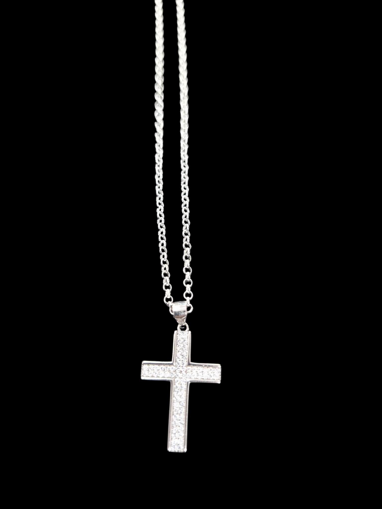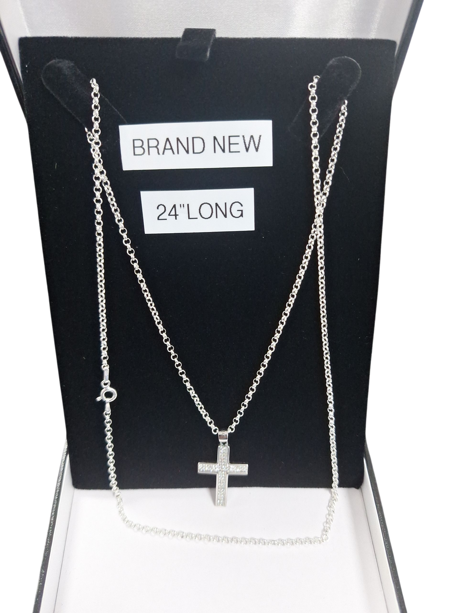 NEW OTHER SILVER CHAIN WITH CROSS 925, LENGHT 24" ,WEIGHT 7.7G