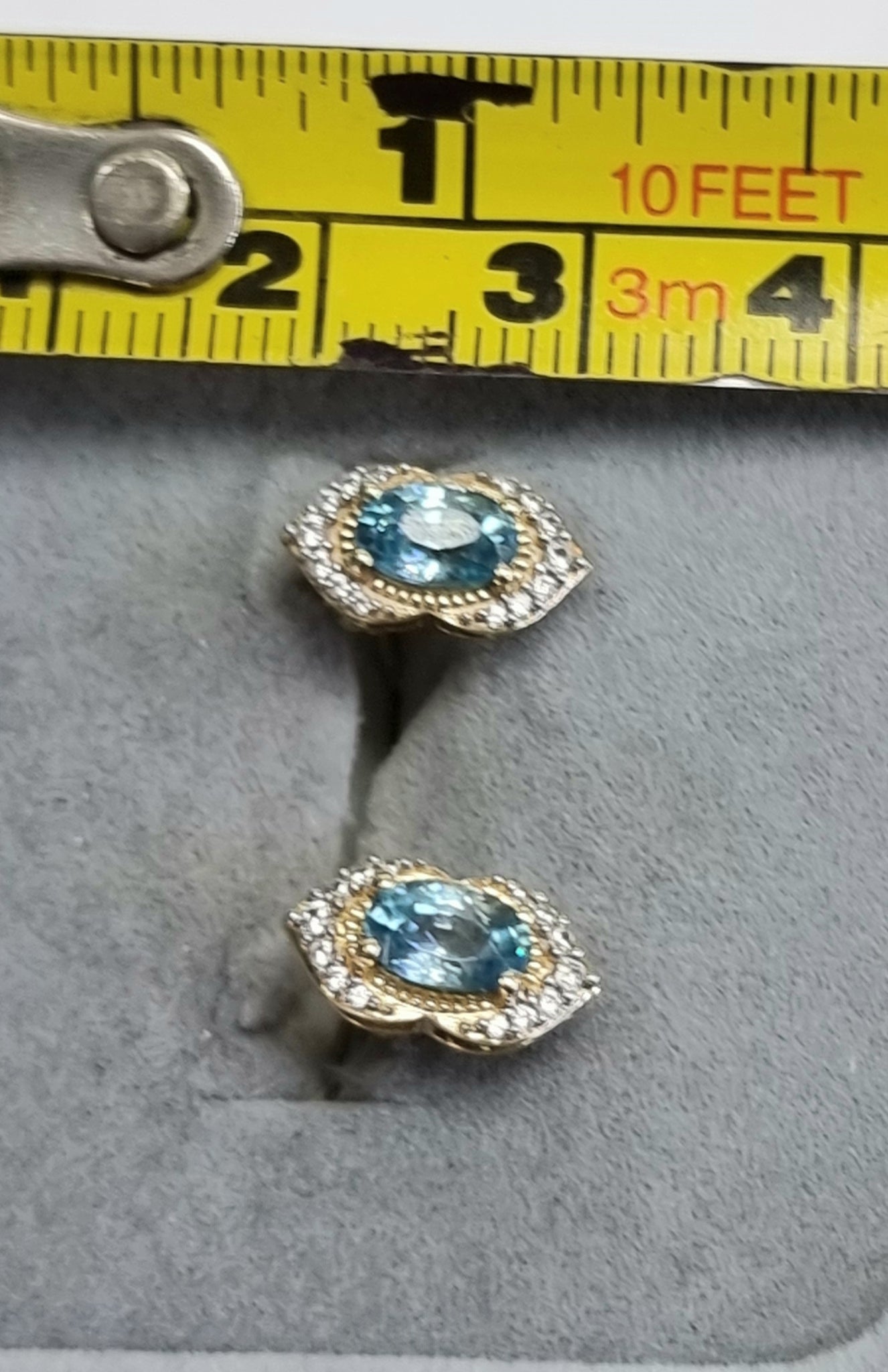 A very pretty set of Aqua/diamond earrings weighing 1.58 grams size as shown in Photograph
