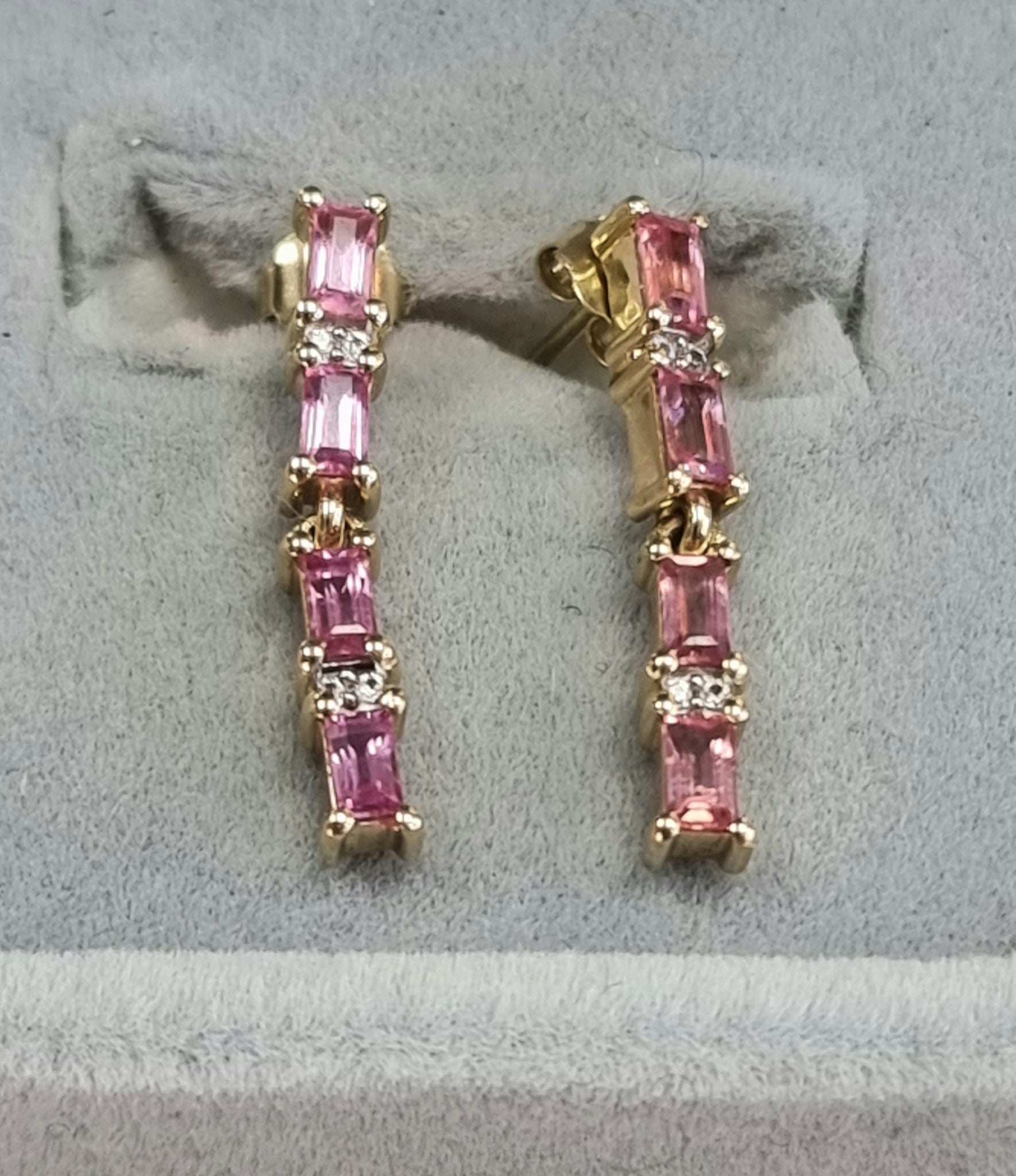 9ct Gold Earrings Drop with Pink/Clear Stones