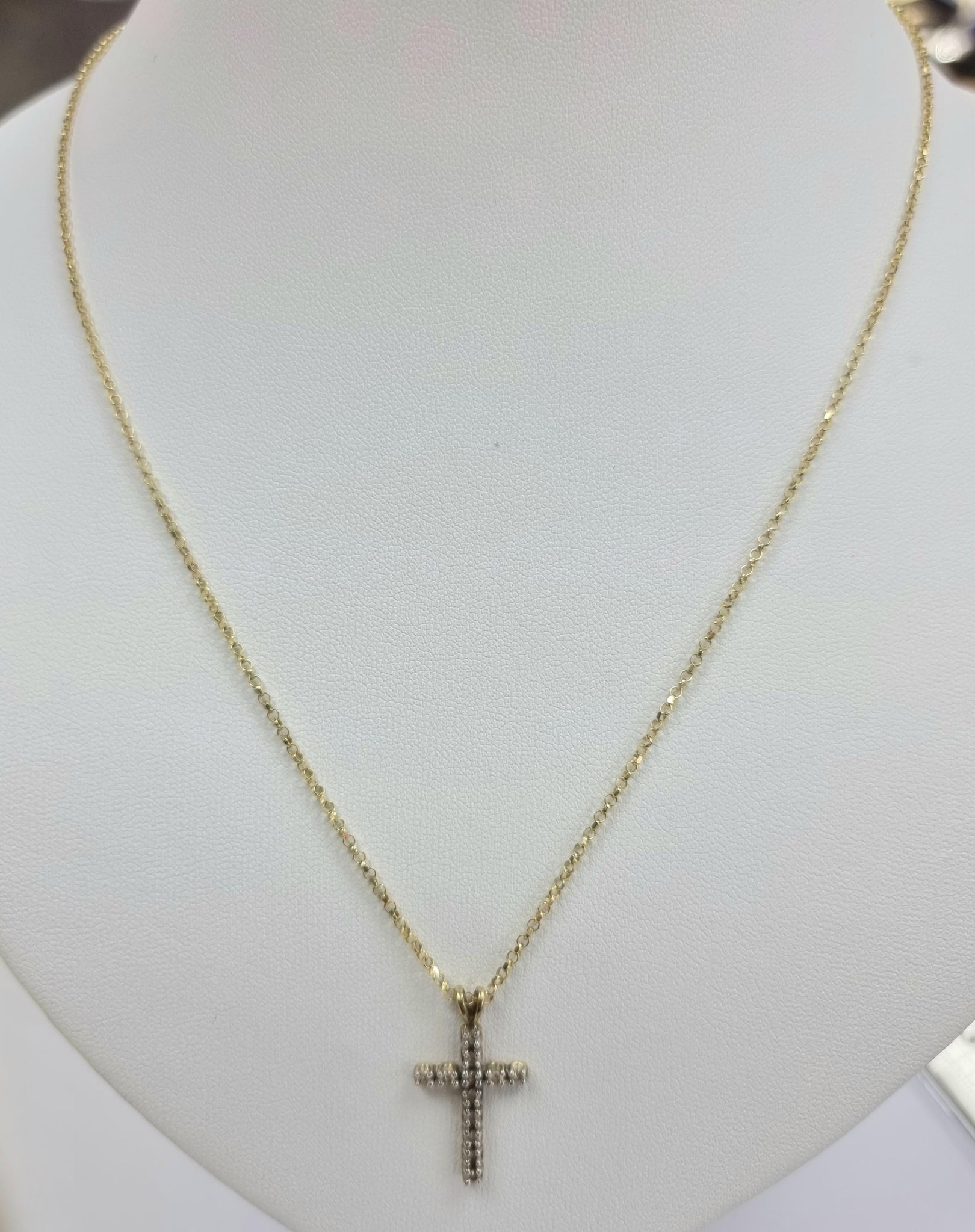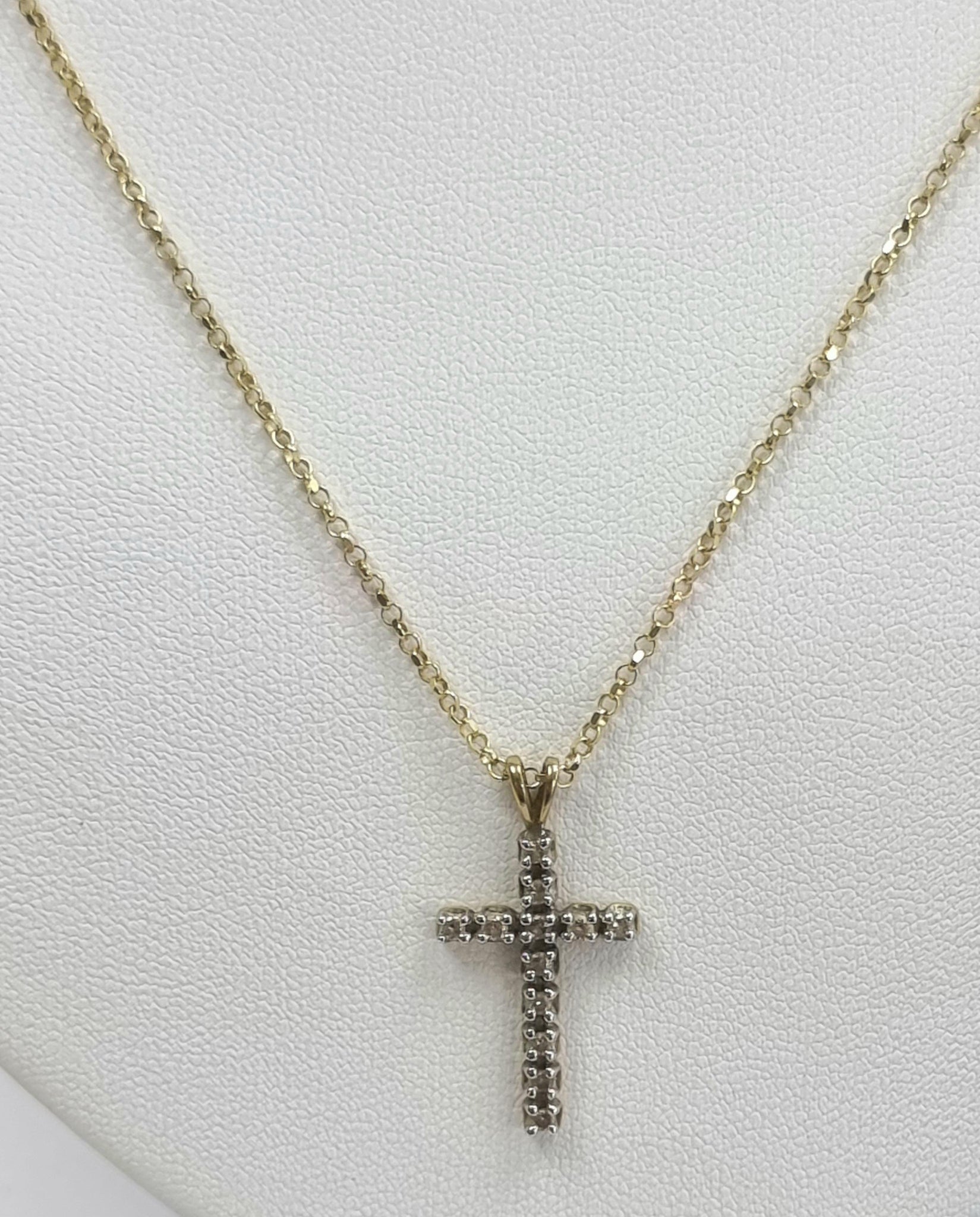 9ct gold chain 20" with a Cross 3cm weighing 3.27 grams in total
