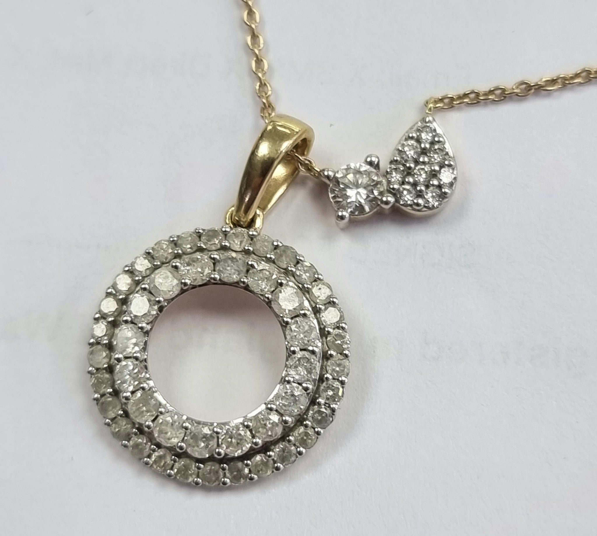 9ct gold necklace with 2 pendants, Moissanite stones this necklace can be 16" to 18" as has an extender It weighs 3.73 grams in total.