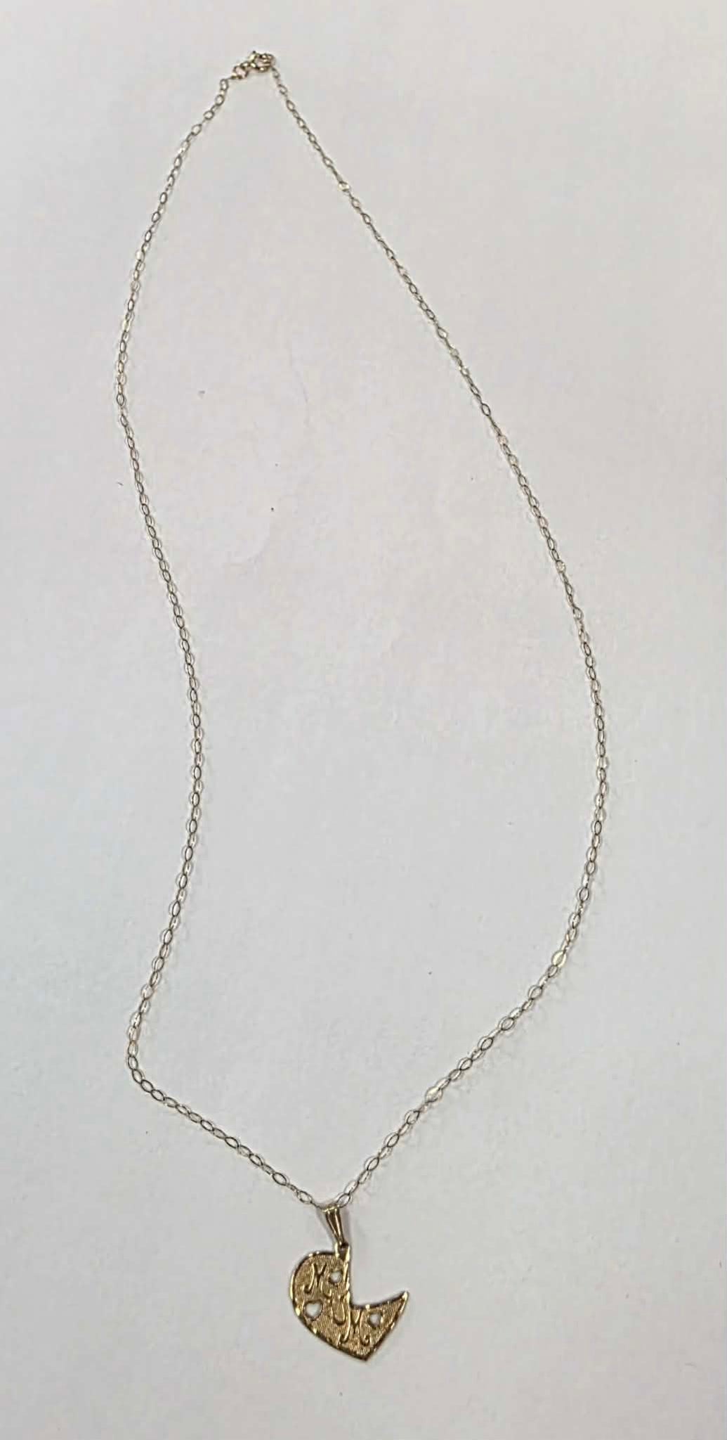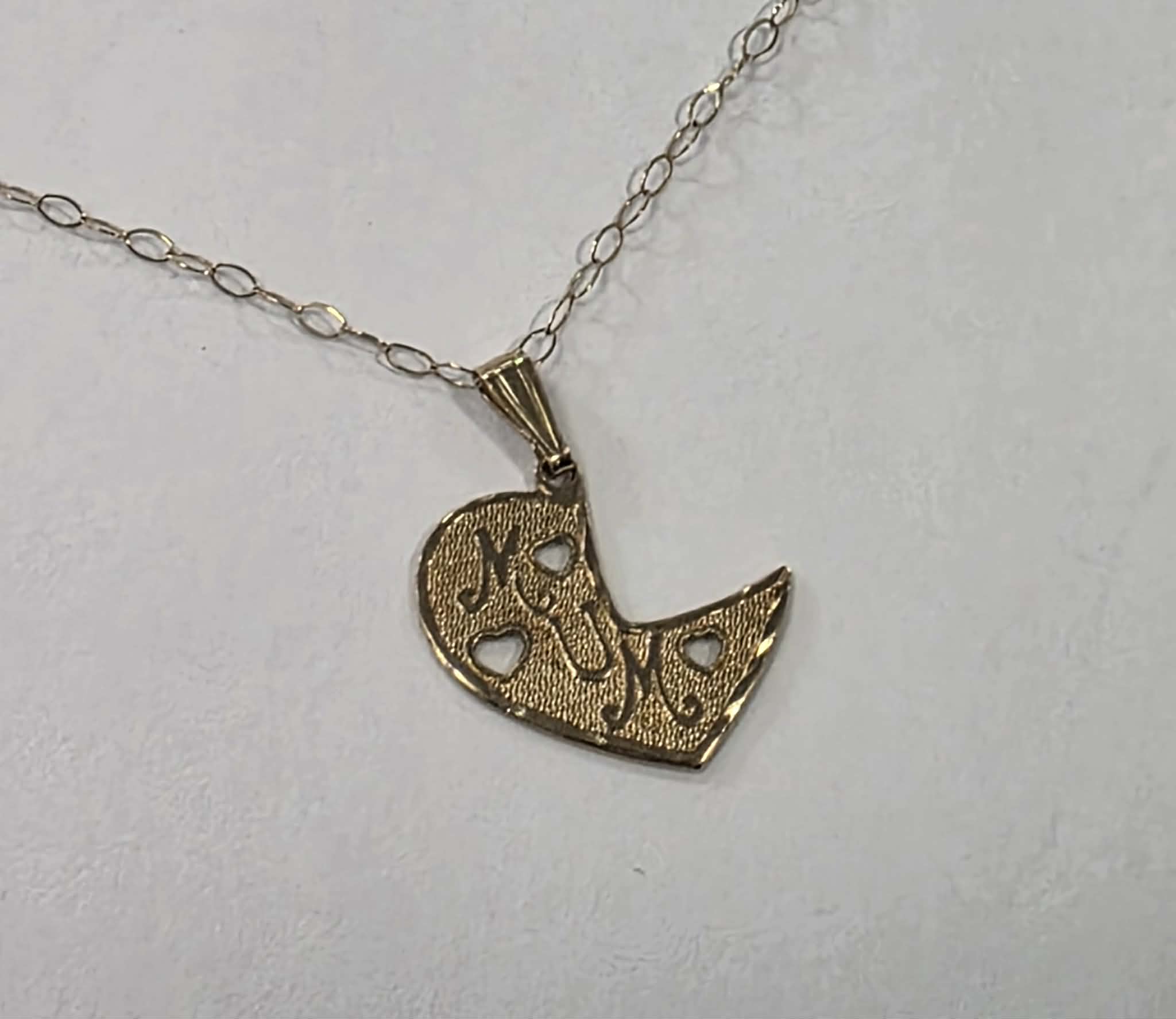 9ct Gold necklace in good condition with mum heart pendant, weighs 1.02g with a total length of 18.5". ***** For any queries please contact our Chorley store direct Mon-Sat at 01257 752333.