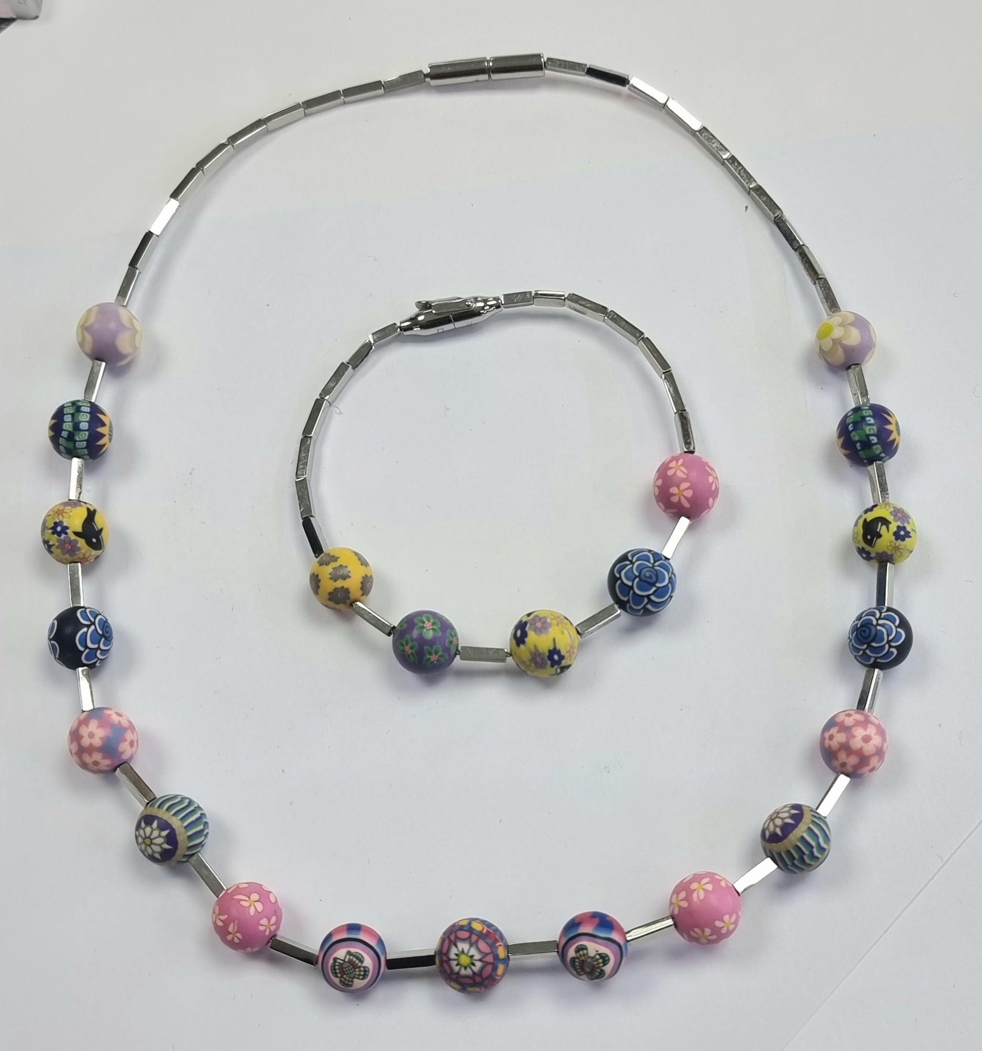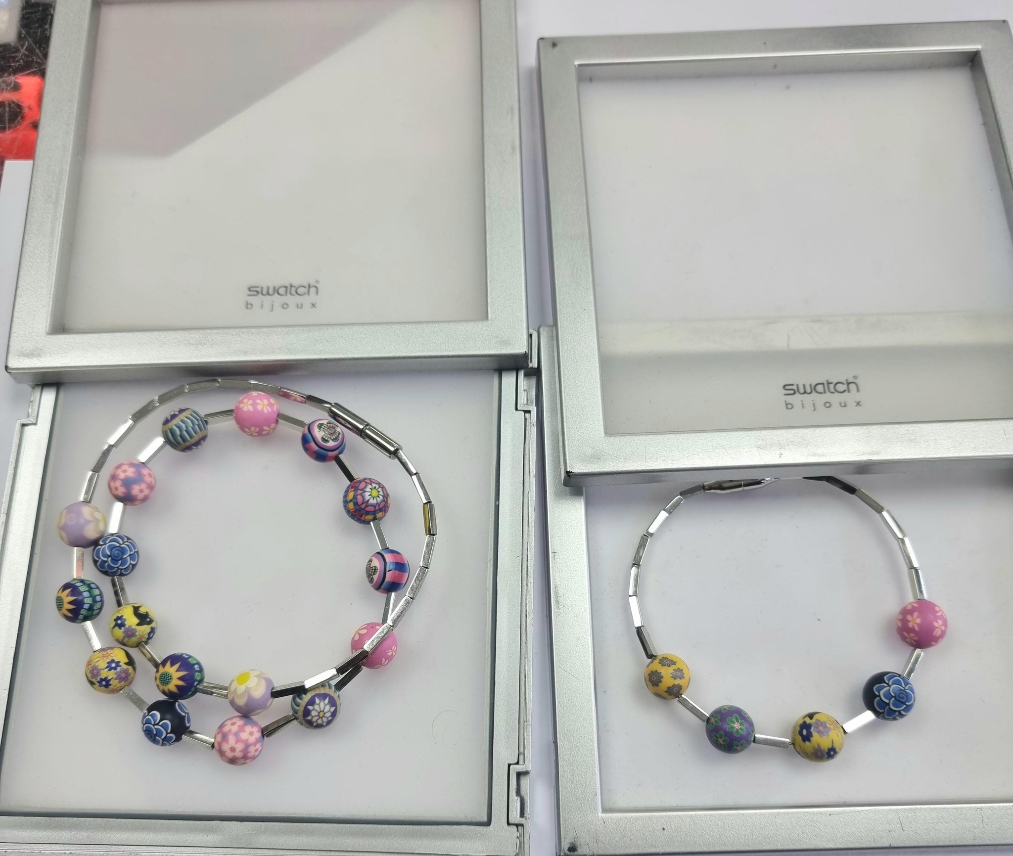 SWatch Bijoux Silver Tone Necklace In Multicolour Beads. **THis is a necklace which is 18" the bracelet is 7.5" come in origianl cases