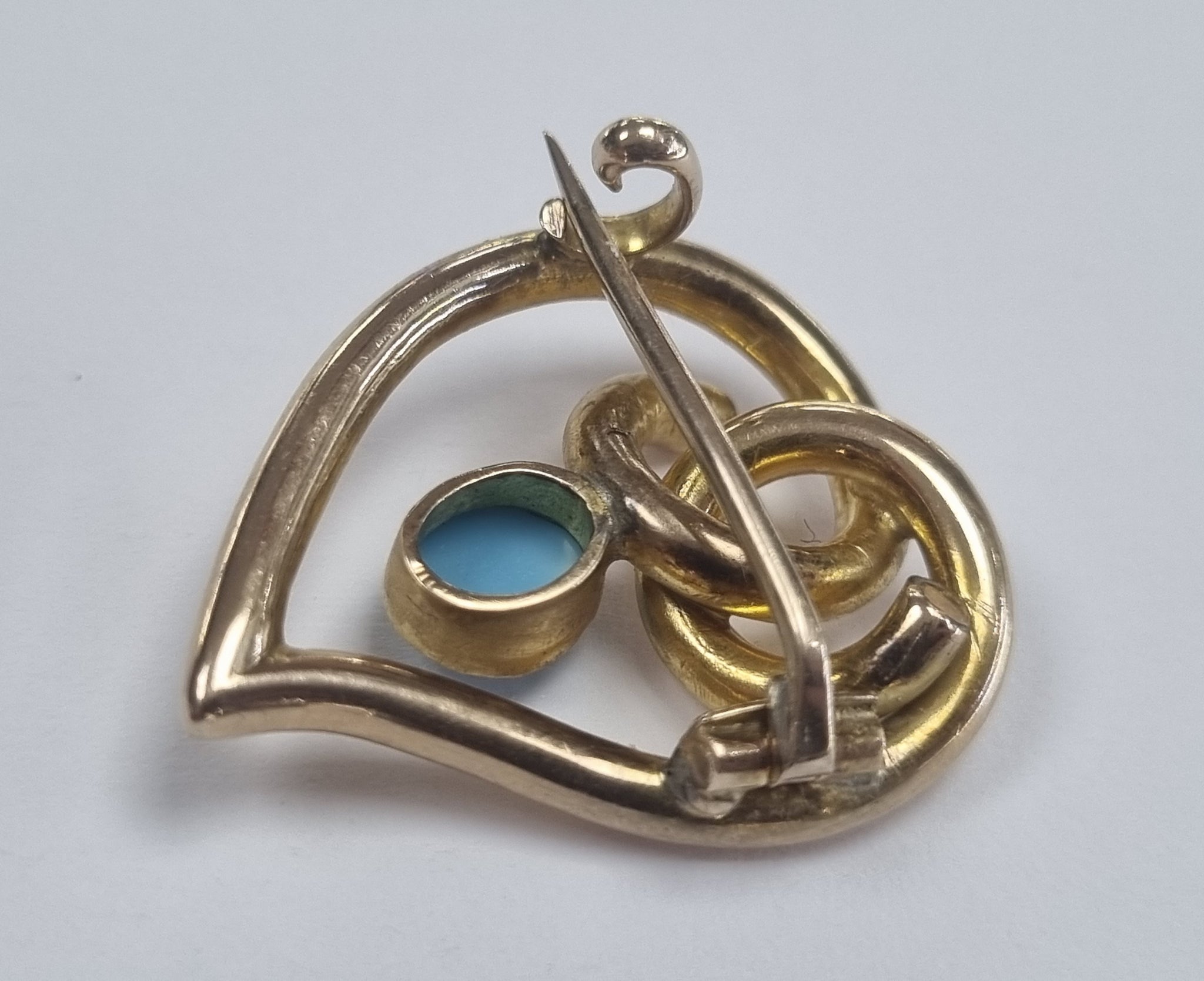 9CT Gold Witches Heart Brooch with Turqouise Stone
