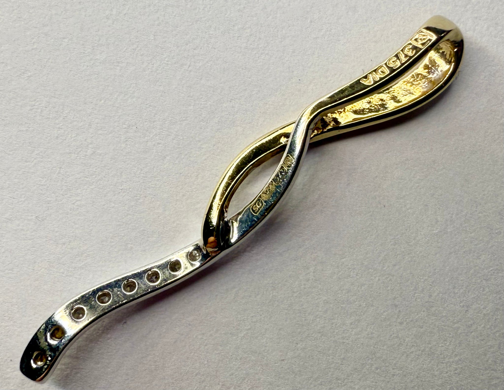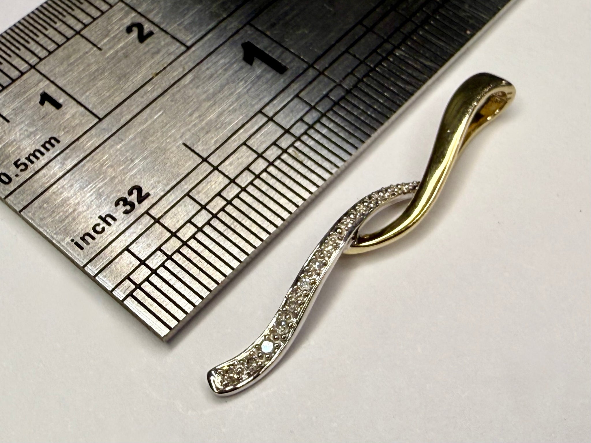 Here we have a 9CT white and yellow gold pendant with diamonds. *** This weighs 0.94 grams and is in good condition, please refer to the photos for size. ***For any queries please call our Chorley store direct from Mon-Sat on 01257 752333.
