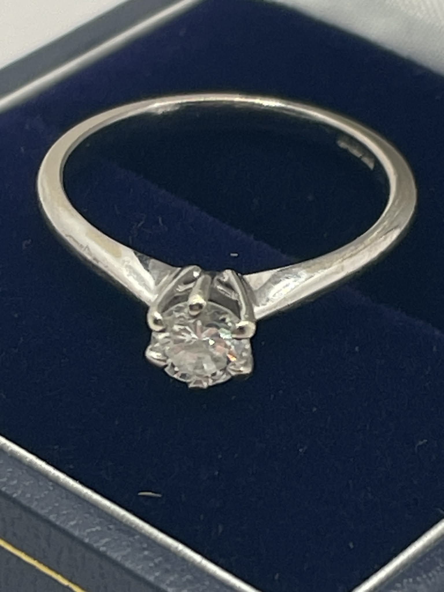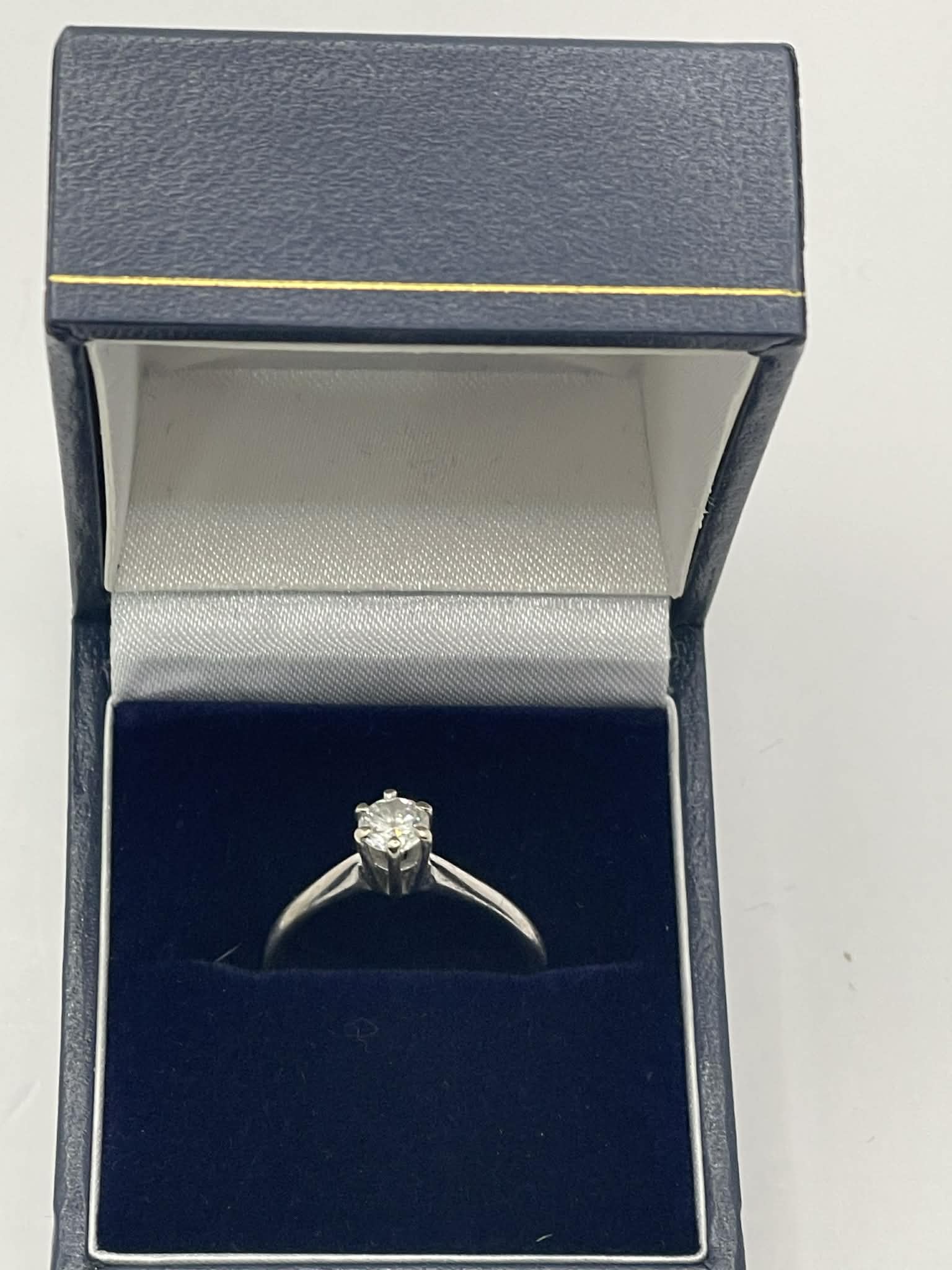 18ct White Gold Ring With Clear Stone Size - L Approx - 2.7g Comes Boxed Good Condition