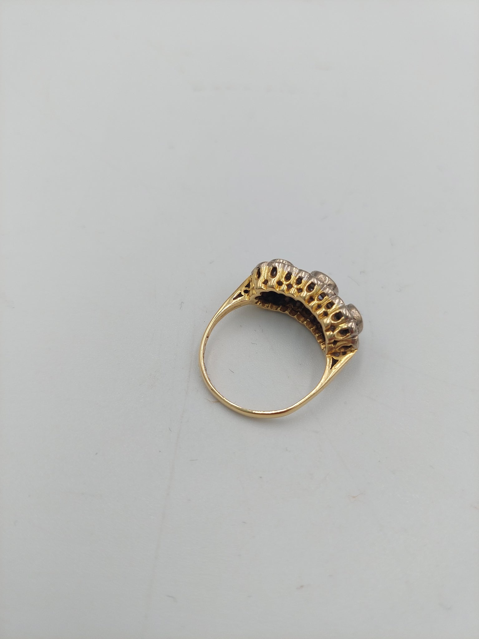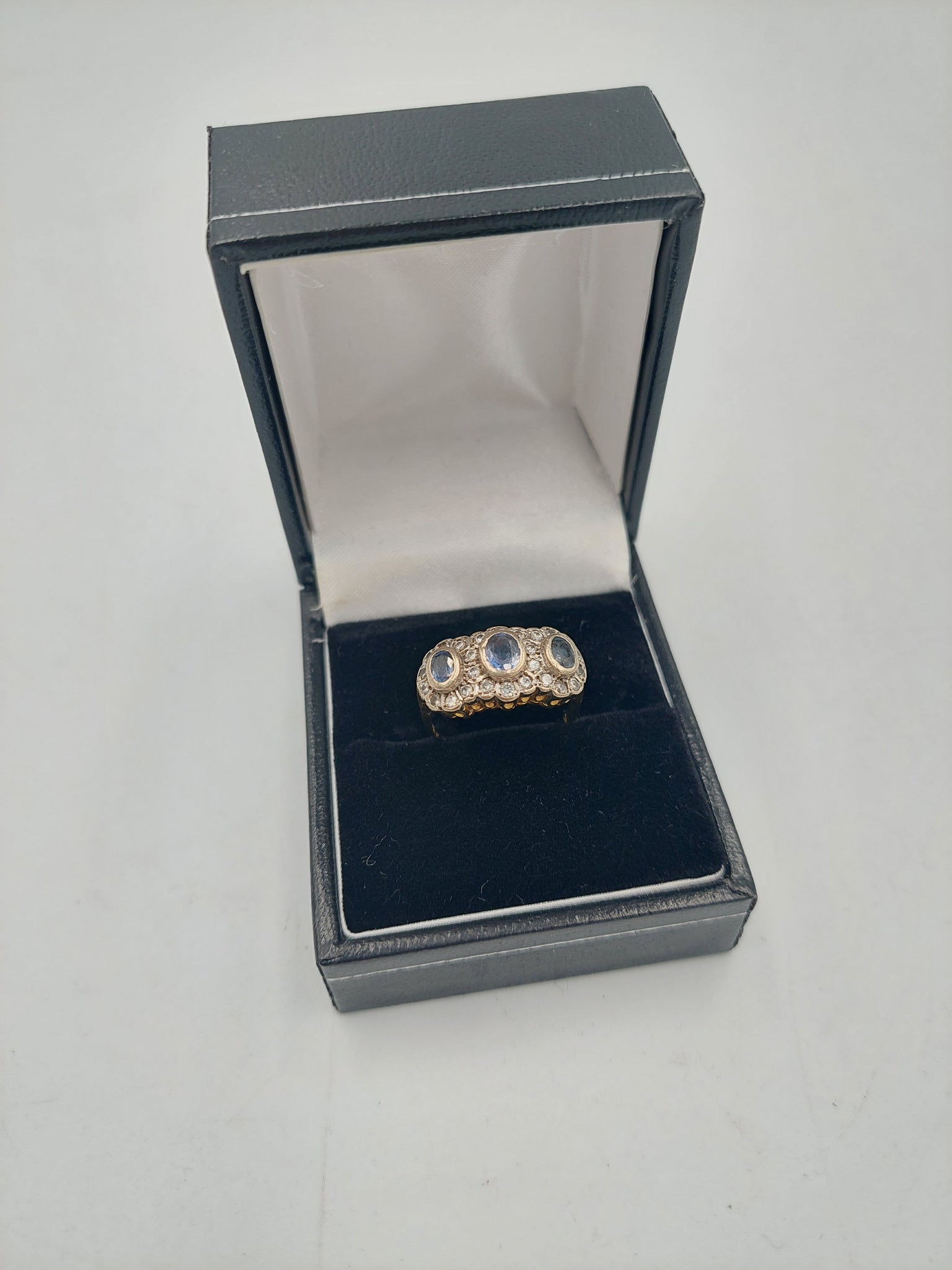 Good Condition Ring, Cleaned up really well and shining clean. Pre-owned but very well looked after. Minor marks at most. All stones intact and no serious cracks or damages.