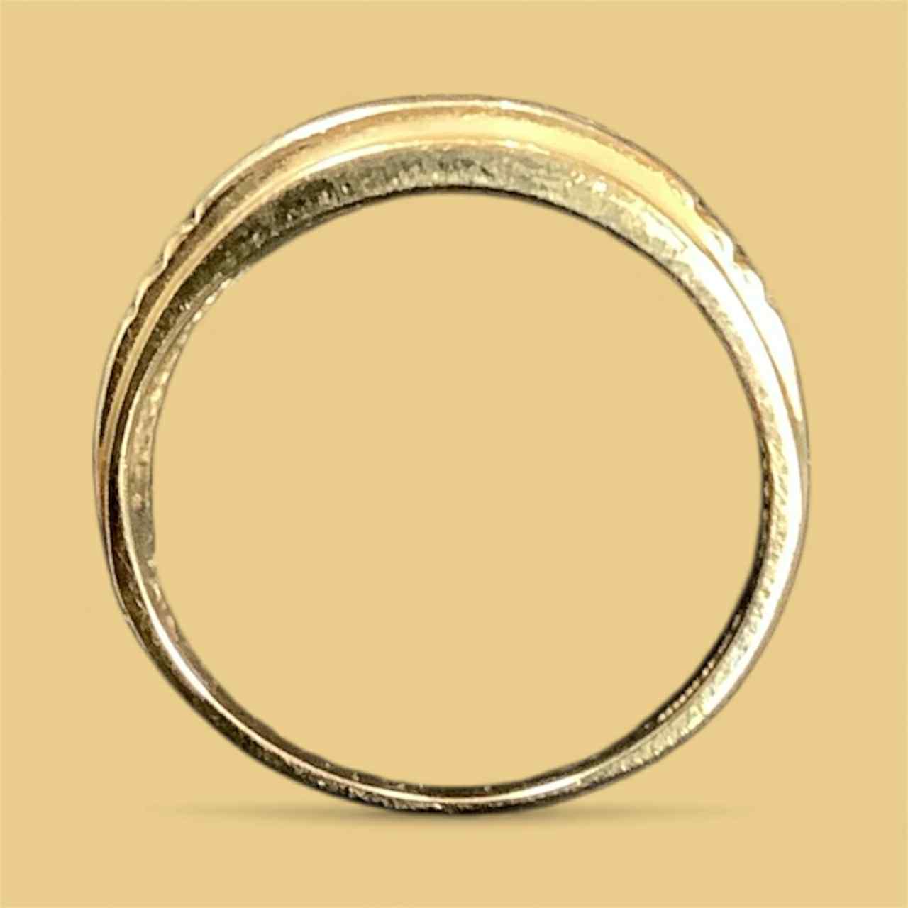 9ct Diamond gents ring size T Metal : 9ct Yellow Gold Product : Ring Design : 3 Stone Diamond Average Weight : 4.22g Size T