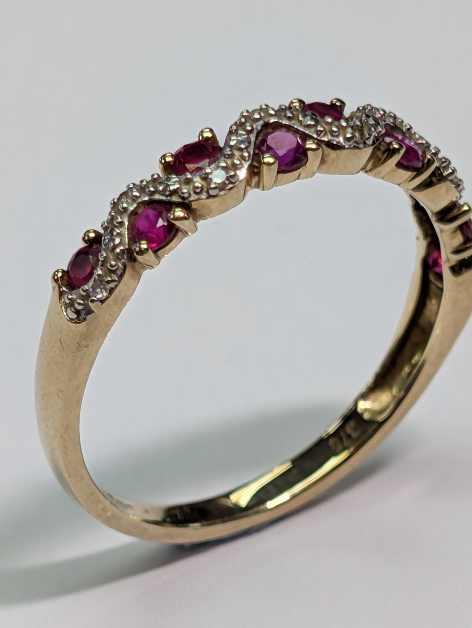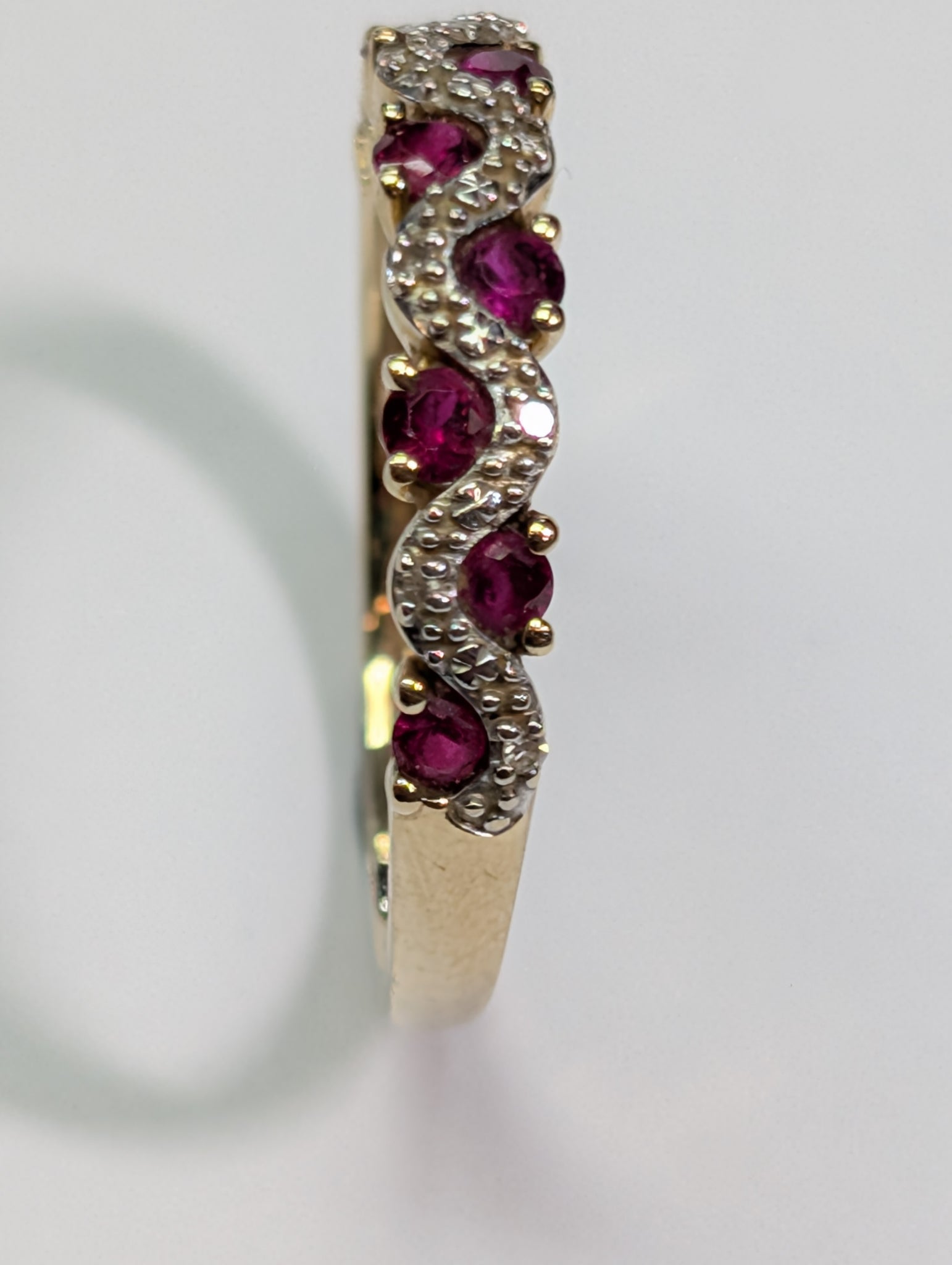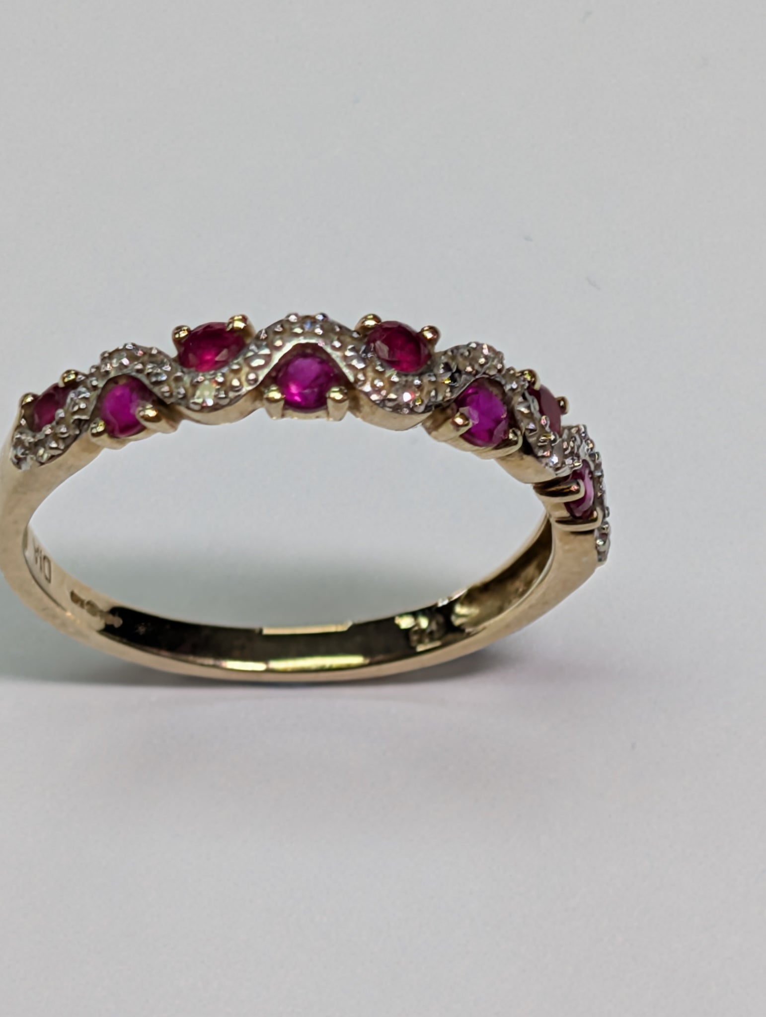 HERE WE HAVE A 9CT GOLD DIAMOND & RED STONE RING. THIS WEIGHS 1.54G AND A SIZE O. ** FOR ANY QUERIES PLEASE CALL OUR PRESTON STORE DIRECT MON-SAT 01772 204889