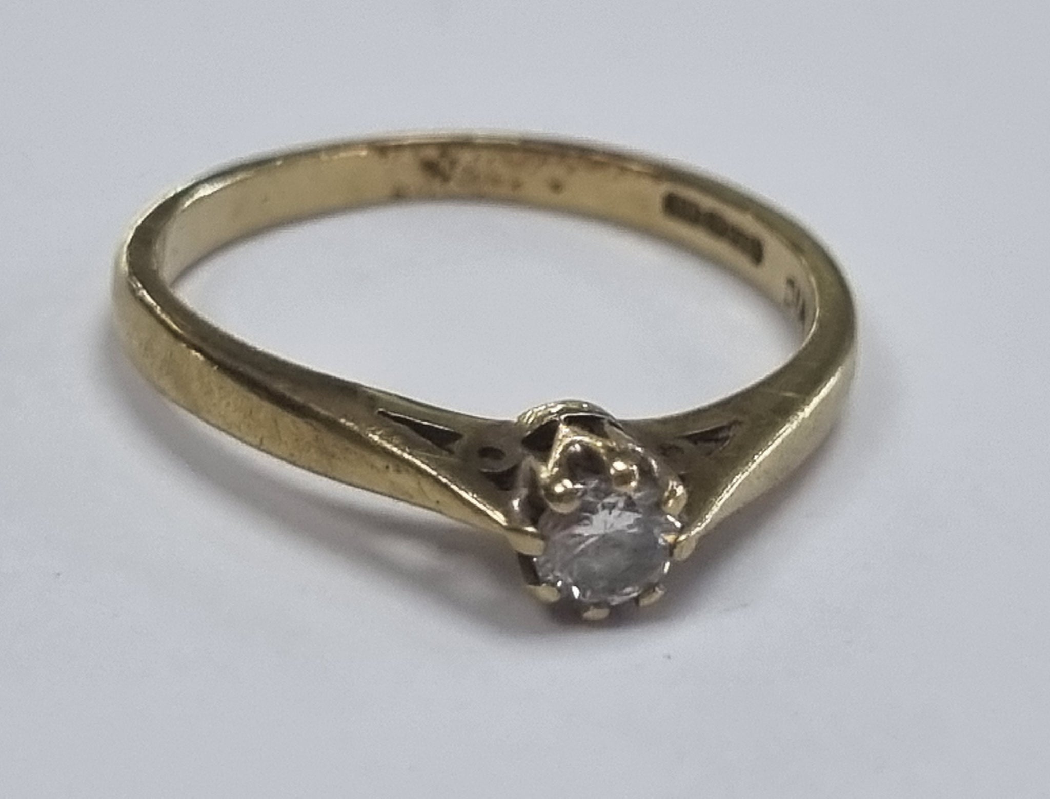 9ct gold diamond solitaire ring, this weighs 1.62grams, O.15CT Diamond Size K1/2, in good condition.