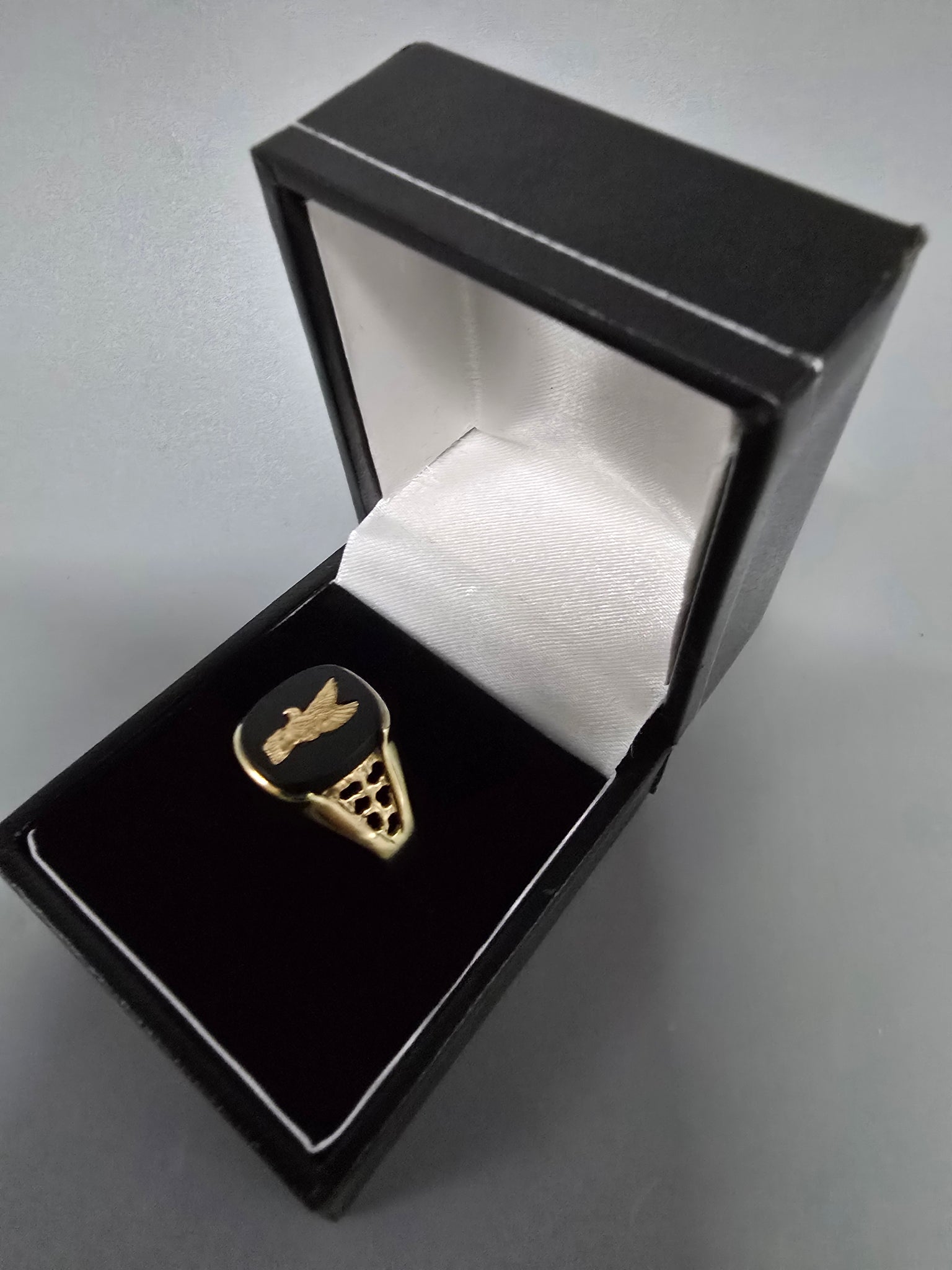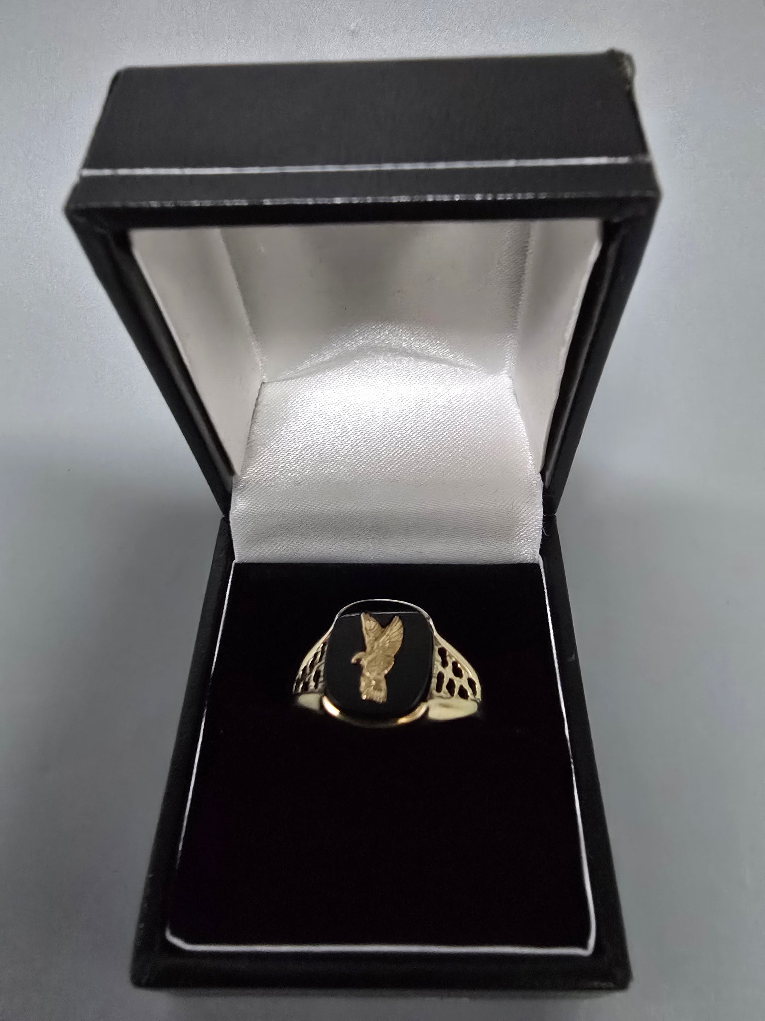 9ct Gold Ring with Black Plate 375 2.6G Size U ITEM HAS BEEN CLEANED AND POILSHED TO A HIGH STANDARED