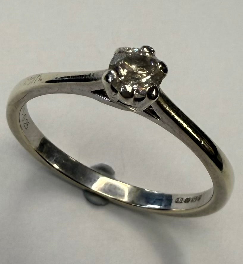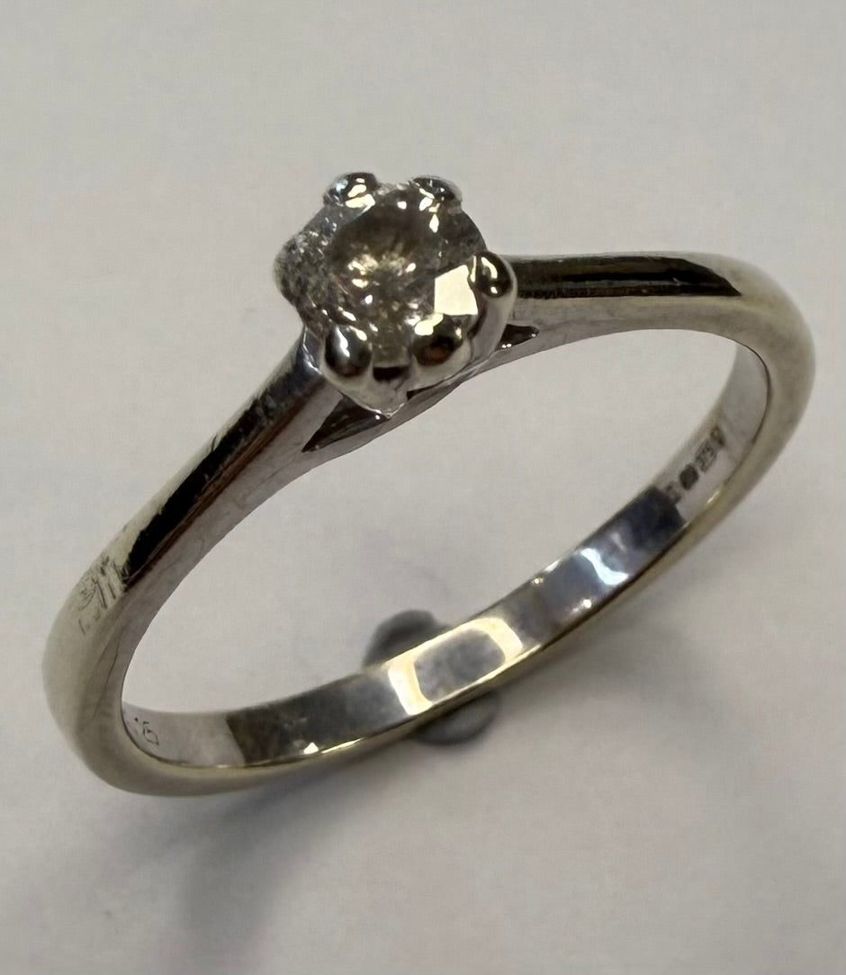 Here we have a 9ct white gold diamond ring. This is a size N and weighs 1.95 grams. The diamond in the ring is 0.25ct. ** For any queries please contact our Chorley store direct on 01257 752333