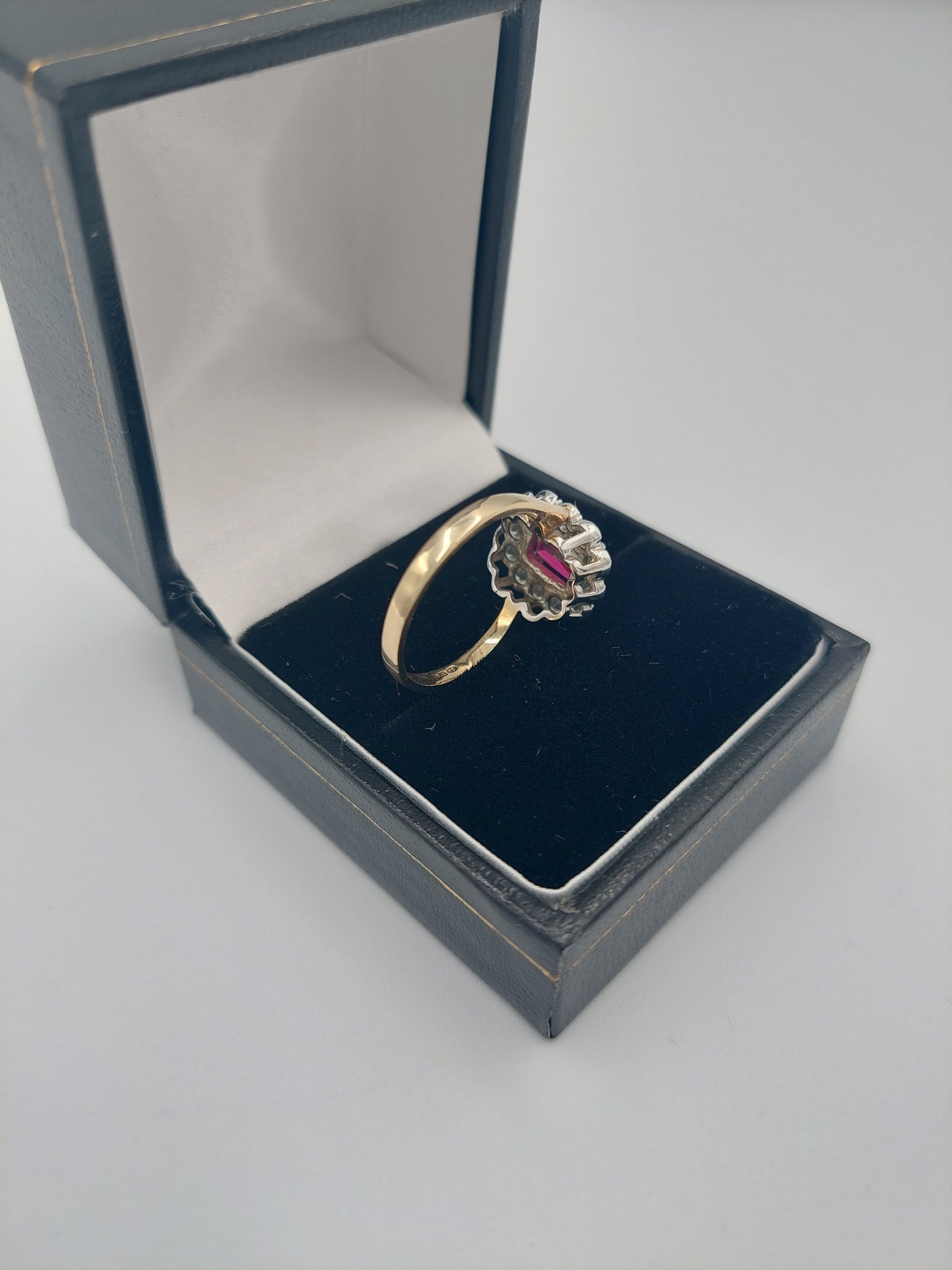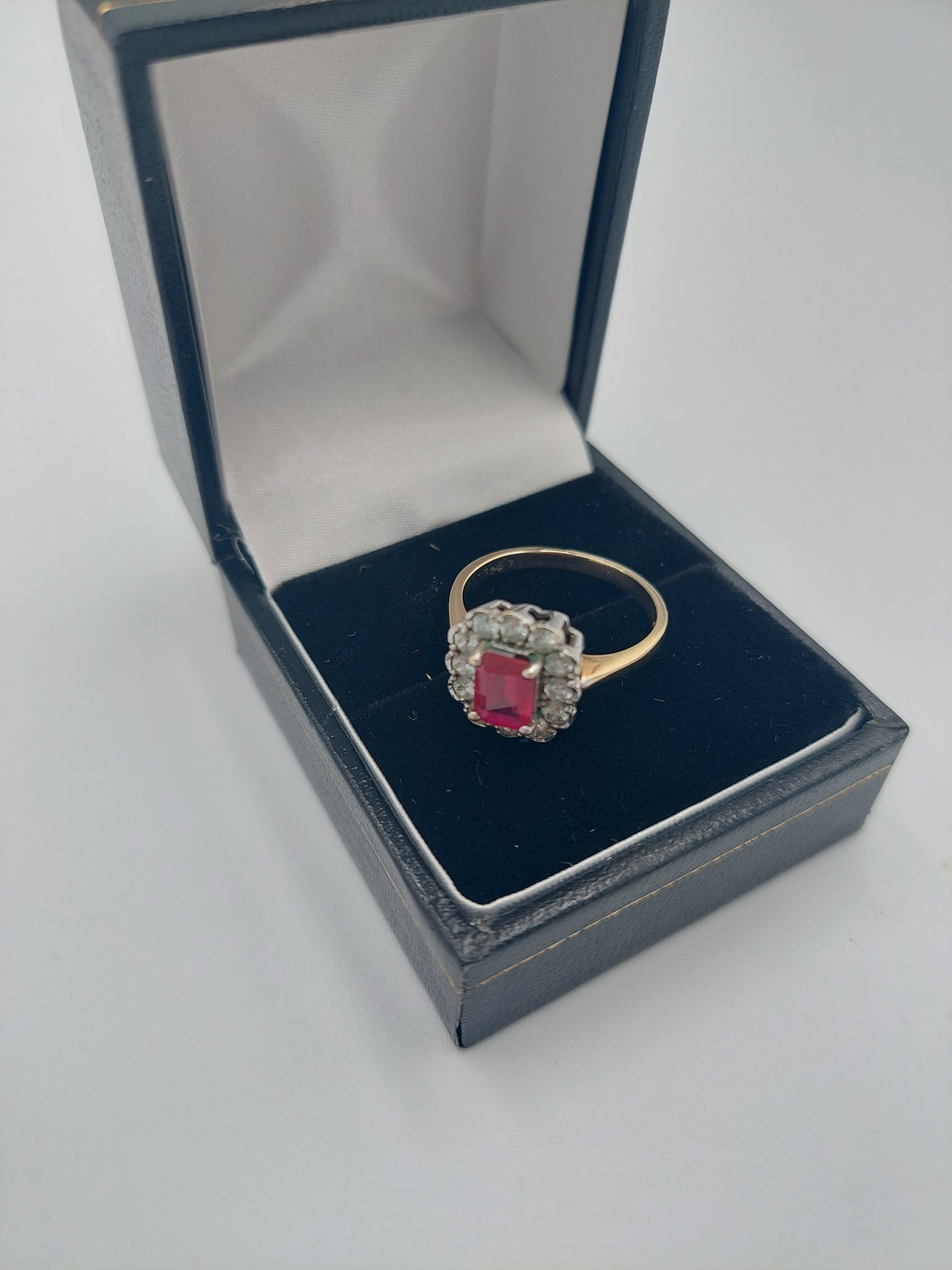 9CT Yellow Gold Ring with Prestigious Pink Stone and Zirconia Stones, 375 Hallmarked, Size: N, 2.9Grams **HALLMARKED AND TESTED**