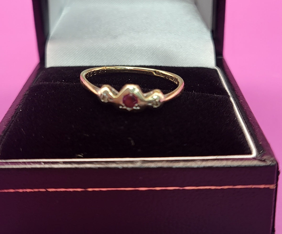 9CT - Yellow Gold Ring With Red And Clear Stones - 1.29G - Size P. Hallmarked