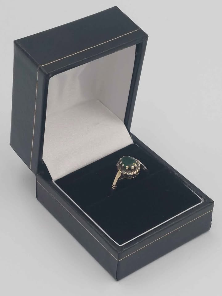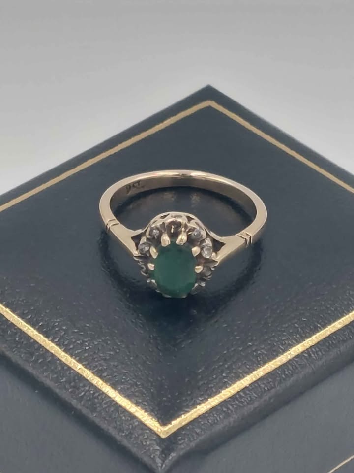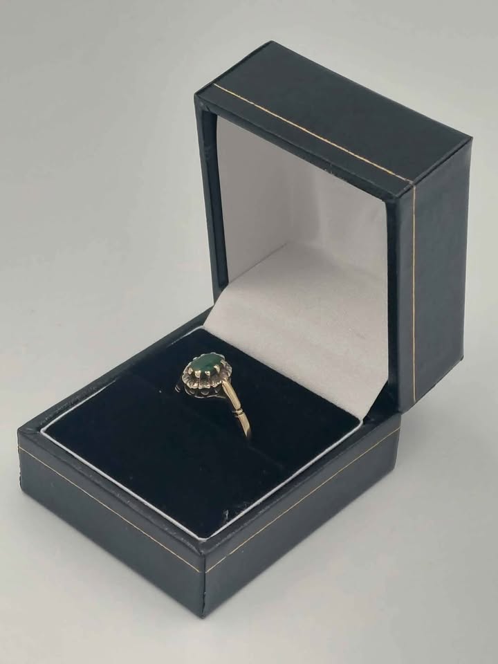 (9K Hallmarked&Tested), Gold Ring With Green Stone, 2.2g, Size K In Great Condition- Looked After Well