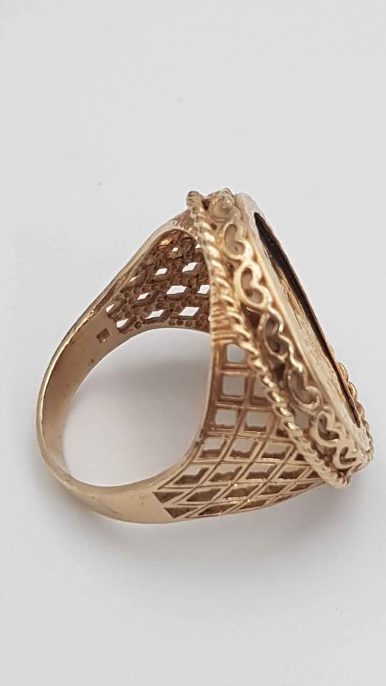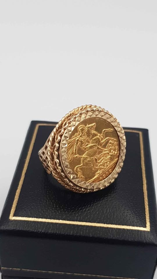 George V 22ct Full SOVEREIGN 1912 (7.9g) mounted in a yellow gold 9ct (6g) Ring size S with presentation box