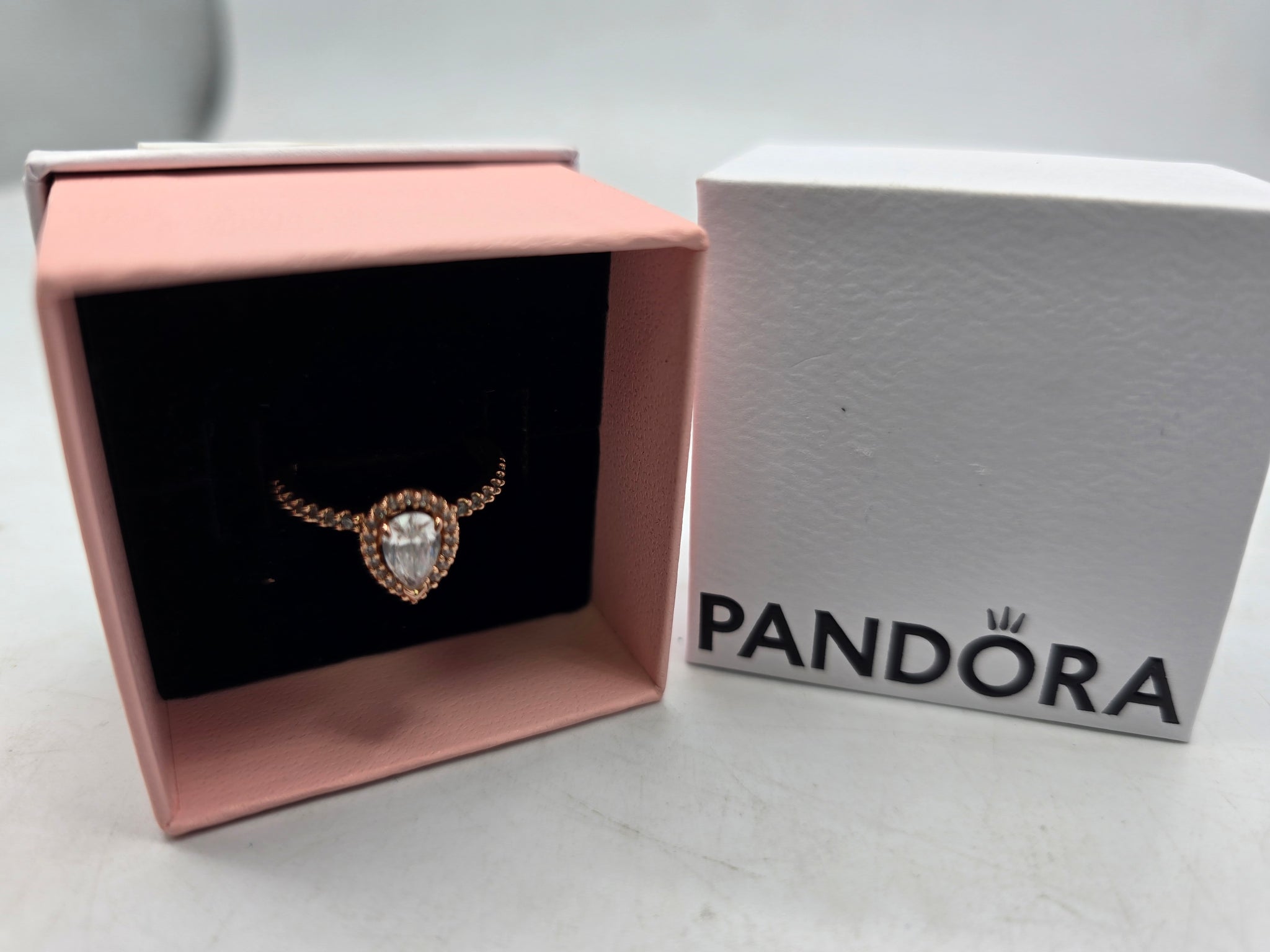 pandora pear halo ring size l boxed, good condition