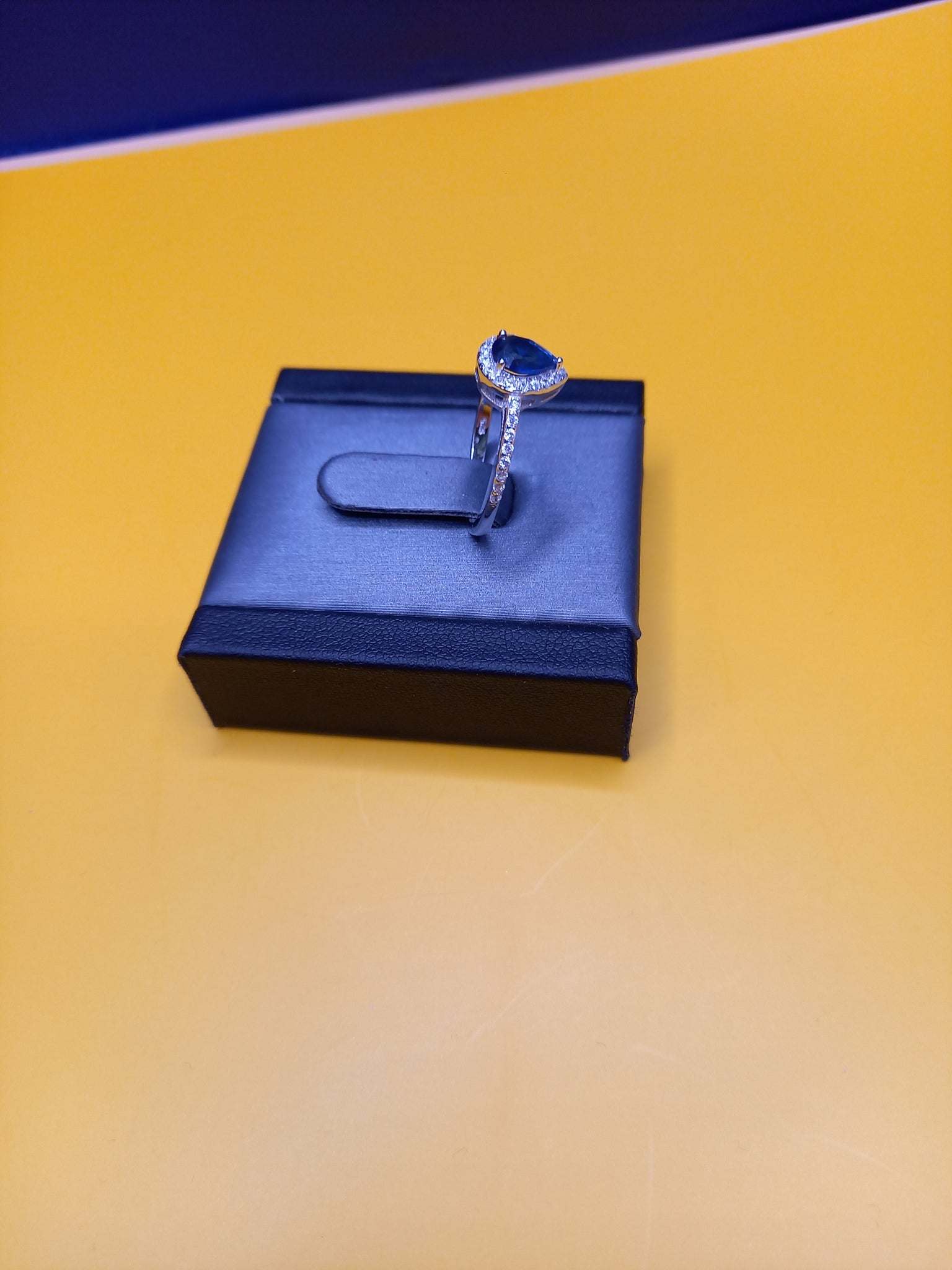 Gorgeous silver ring, tear drop shape dark blue stone Size-P