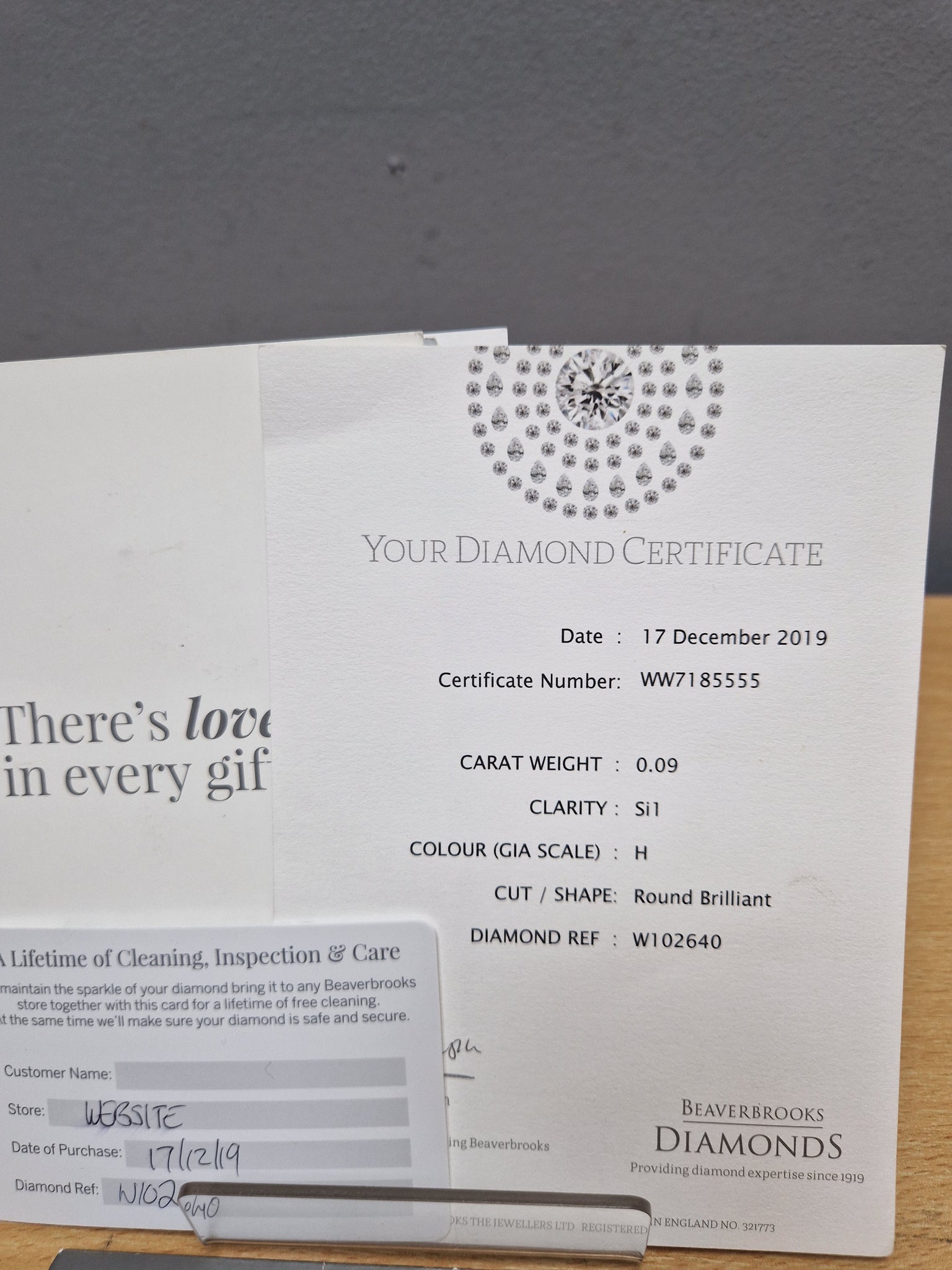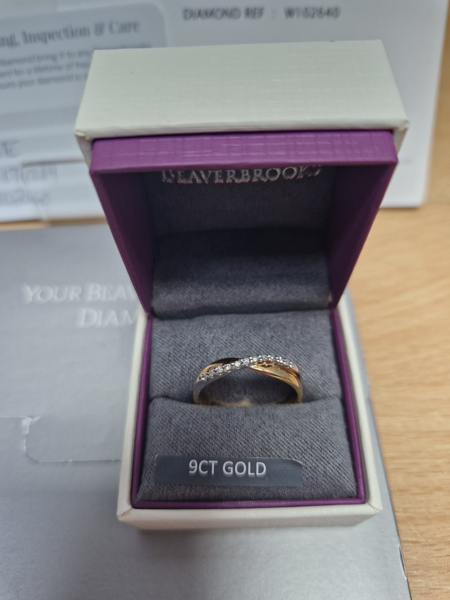 Great condition Lovely ring. Few light cosmetic scratches on the underneath, comes with paperwork and ring box Weight 2.5g Diamonds 0.09 round brilliant Clarity Si1 Size p 1/2