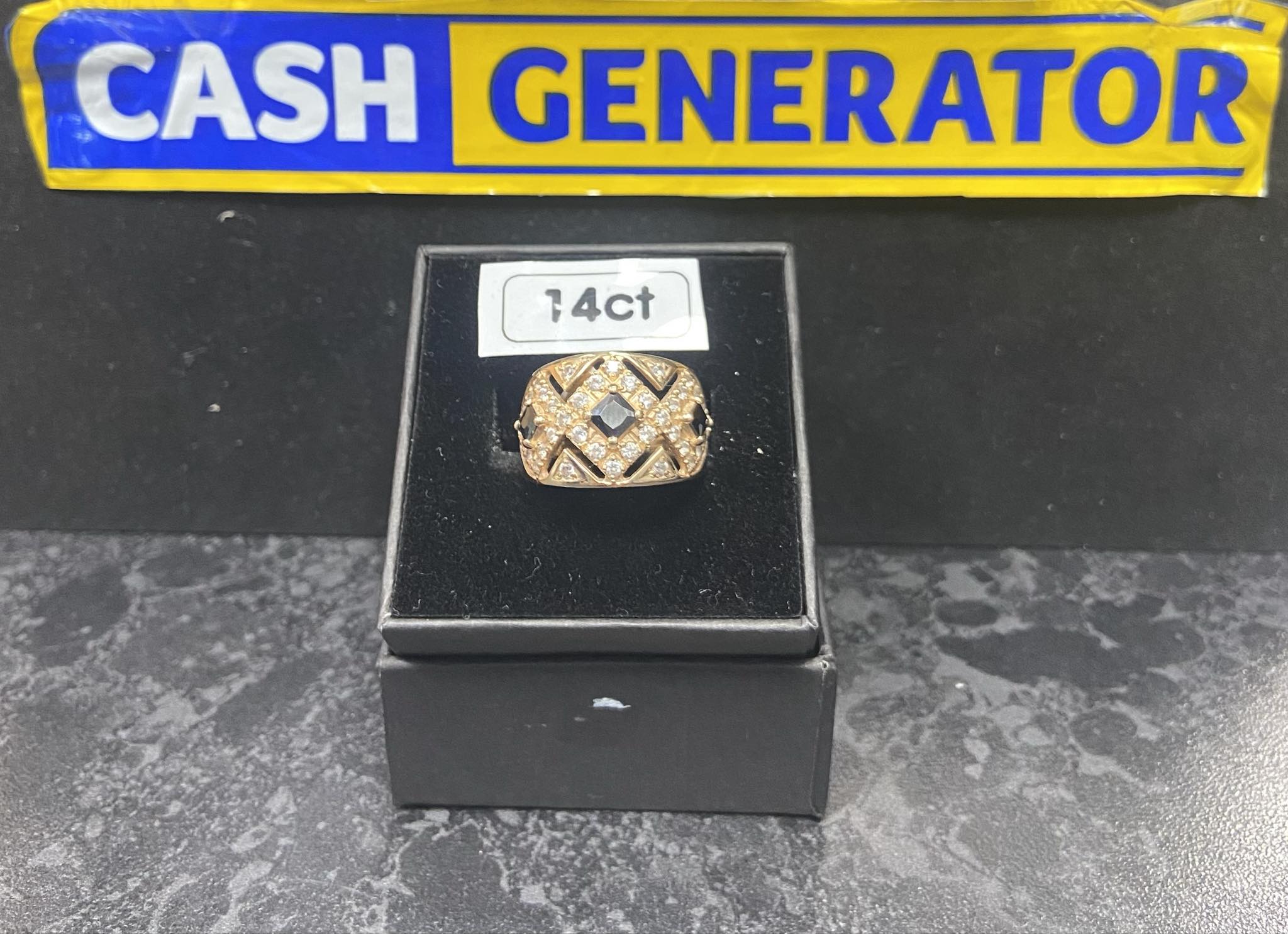 A 14ct gold sapphire ring that weighs 5.86g and is size Q. Ring is in fantastic condition.