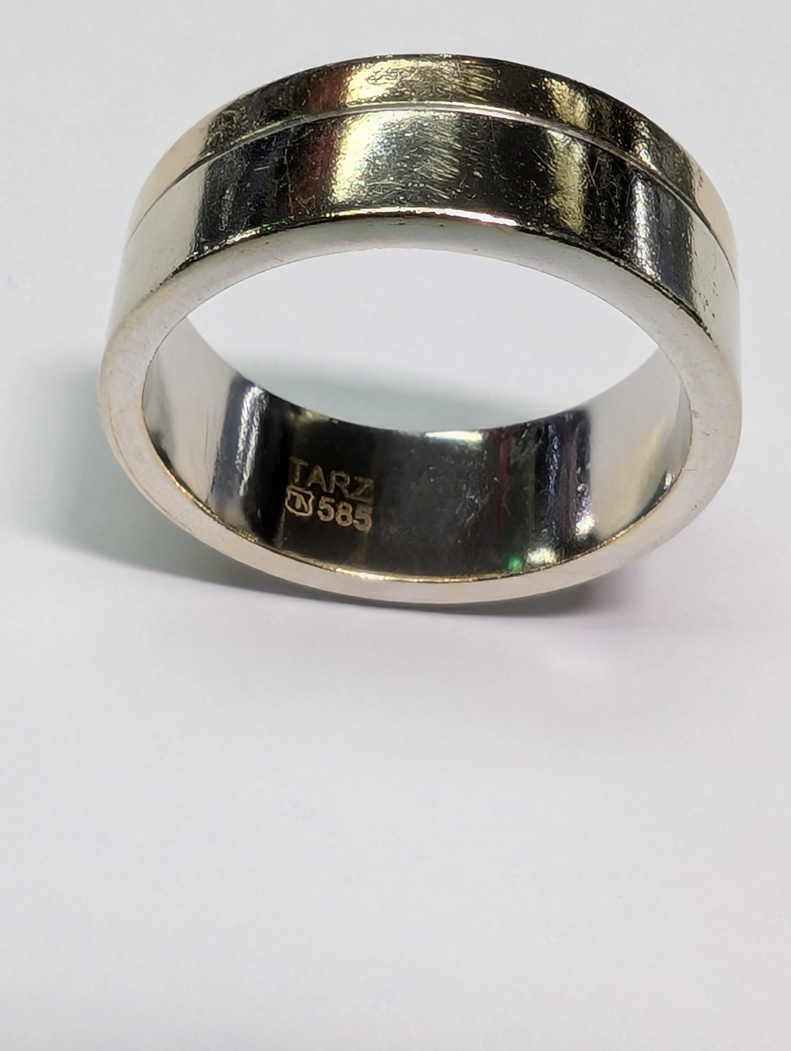HERE WE HAVE A 14CT TWO TONED WHITE & YELLOW GOLD RING. THIS RING IS IN GOOD CONDITION AND COMES UNBOXED. WEIGHT OF 7.70G AND A SIZE T. ******* FOR ANY QUERIES PLEASE CONTACT OUR PRESTON STORE DIRECTLY MON-SAT AT 01772 204889