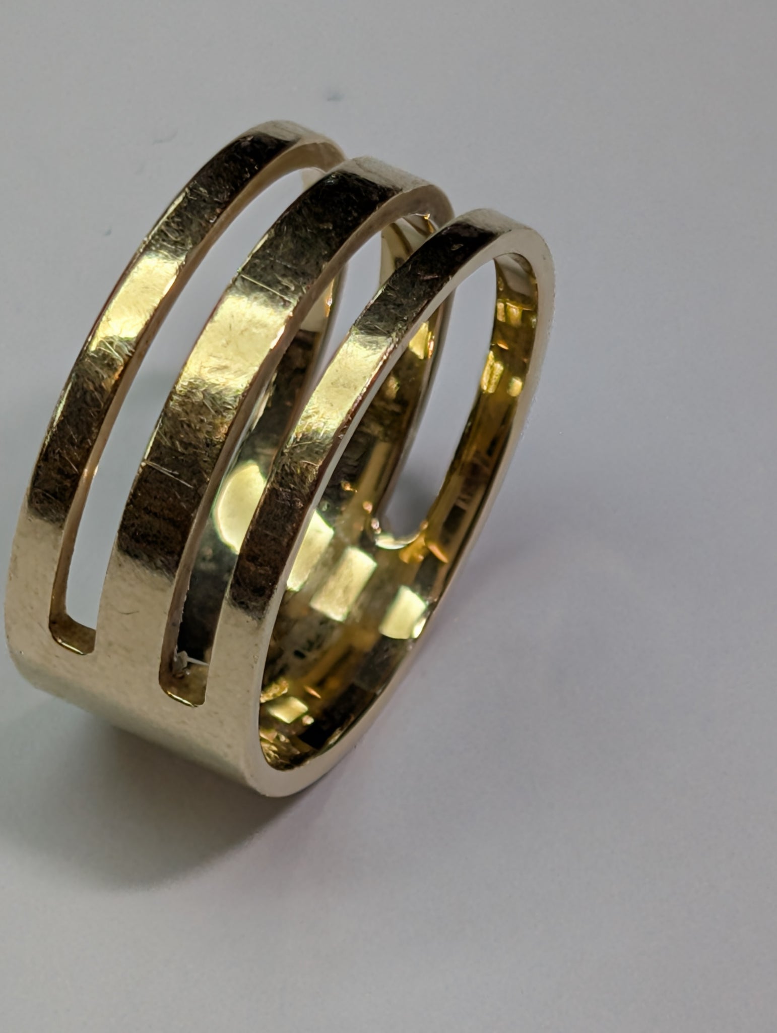 HERE WE HAVE A 14CT GOLD VENTED RING. THIS WEIGHS 4.95G AND A SIZE M 1/2. THERE IS SOME LIGHT WEAR FROM GENERAL USE AS SHOWN. ** FOR ANY QUERIES PLEASE CALL OUR PRESTON STORE DIRECT MON-SAT 01772 204889