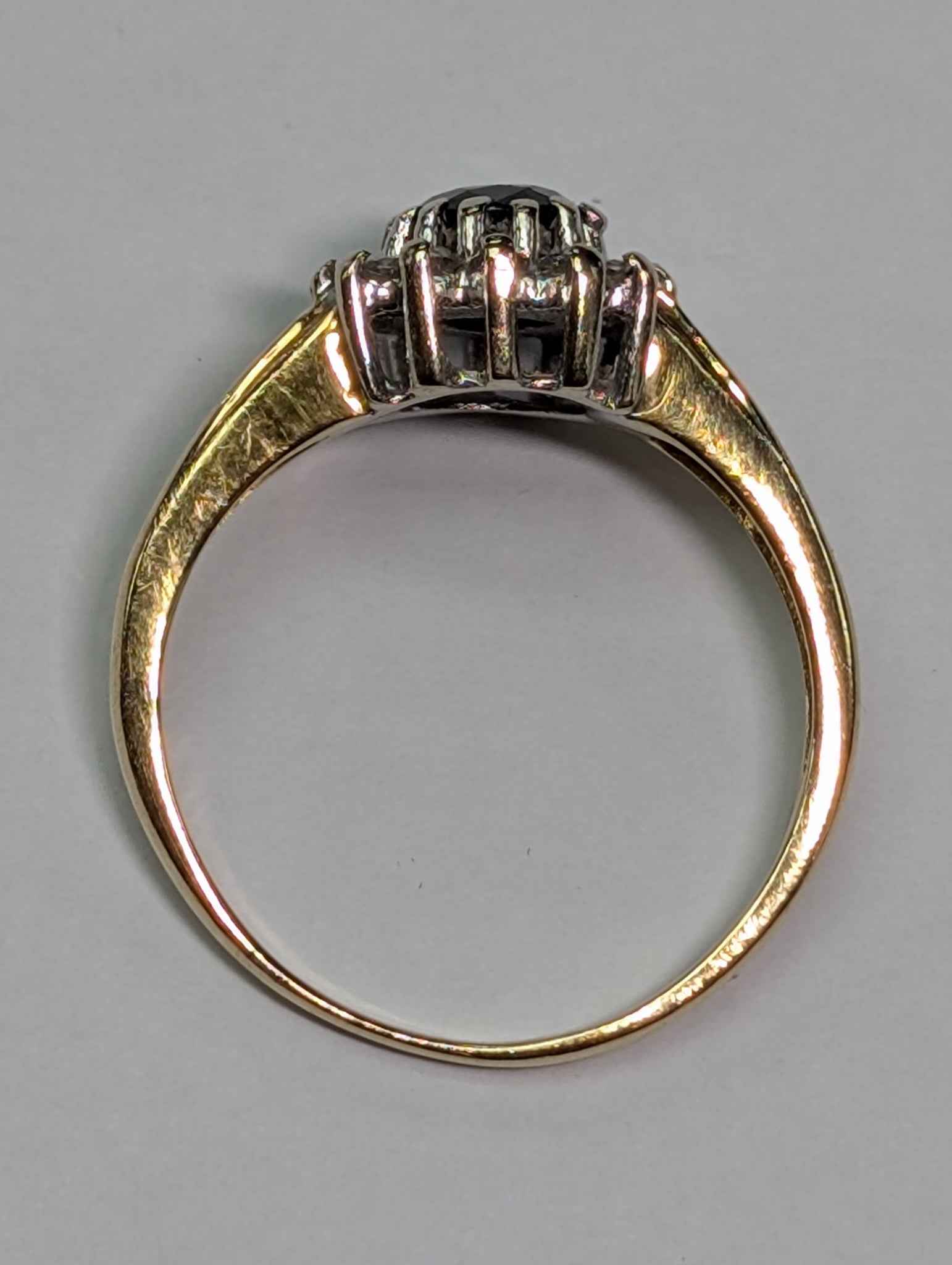 18CT Gold Diamond & Black Stone Ring Size M 1/2