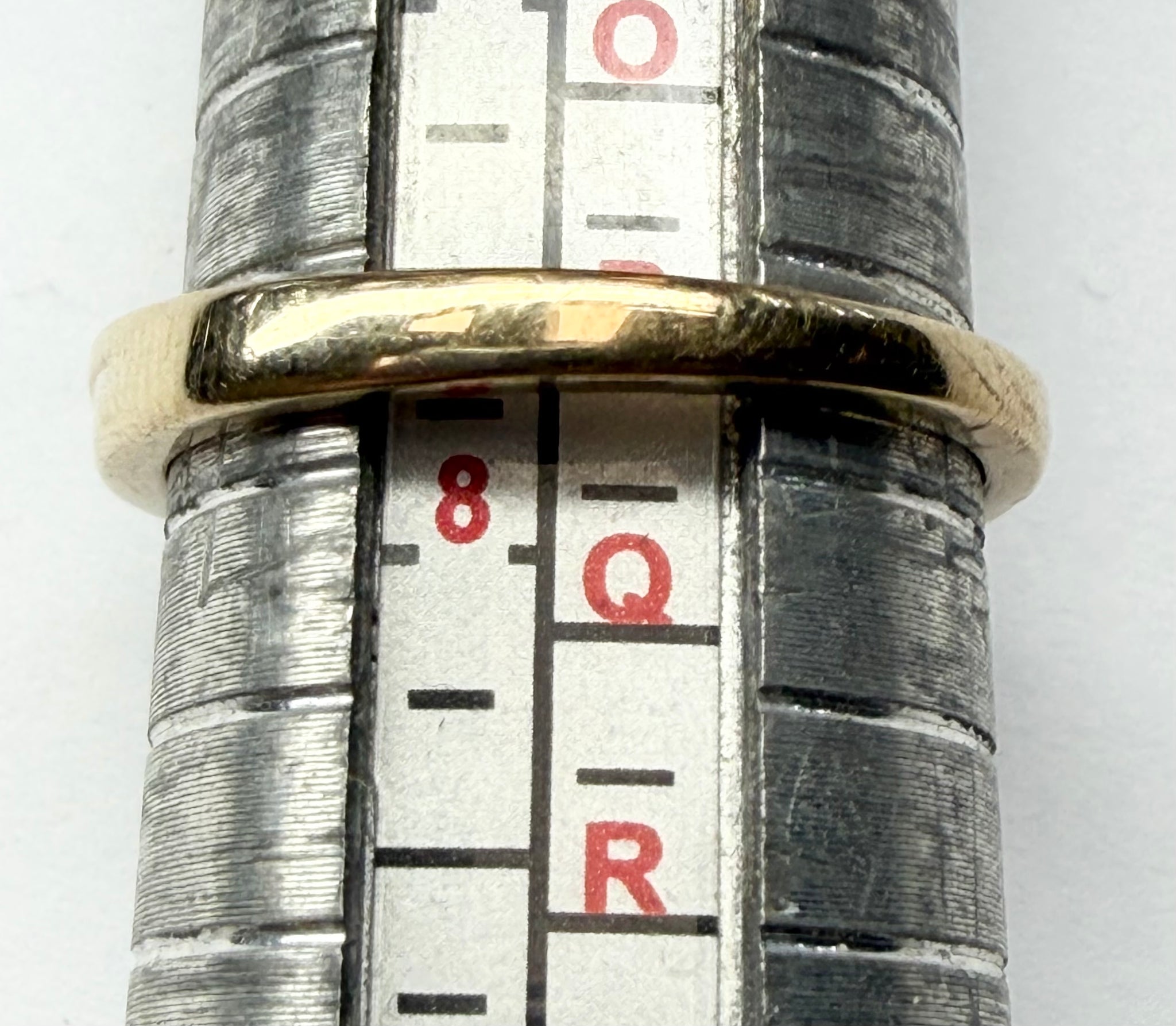 Beautiful 9ct yellow gold ring embossed with diamonds in a wave pattern weighing 1.8g and is a size P