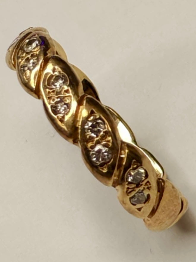 HERE WE HAVE A 9CT GOLD RING. WITH MOISSANITE STONES. THIS WEIGHS 1.95 GRAMS AND IS A SIZE J. ** FOR ANY QUERIES PLEASE CONTACT OUR STORE IN CHORLEY ON 01257 752333