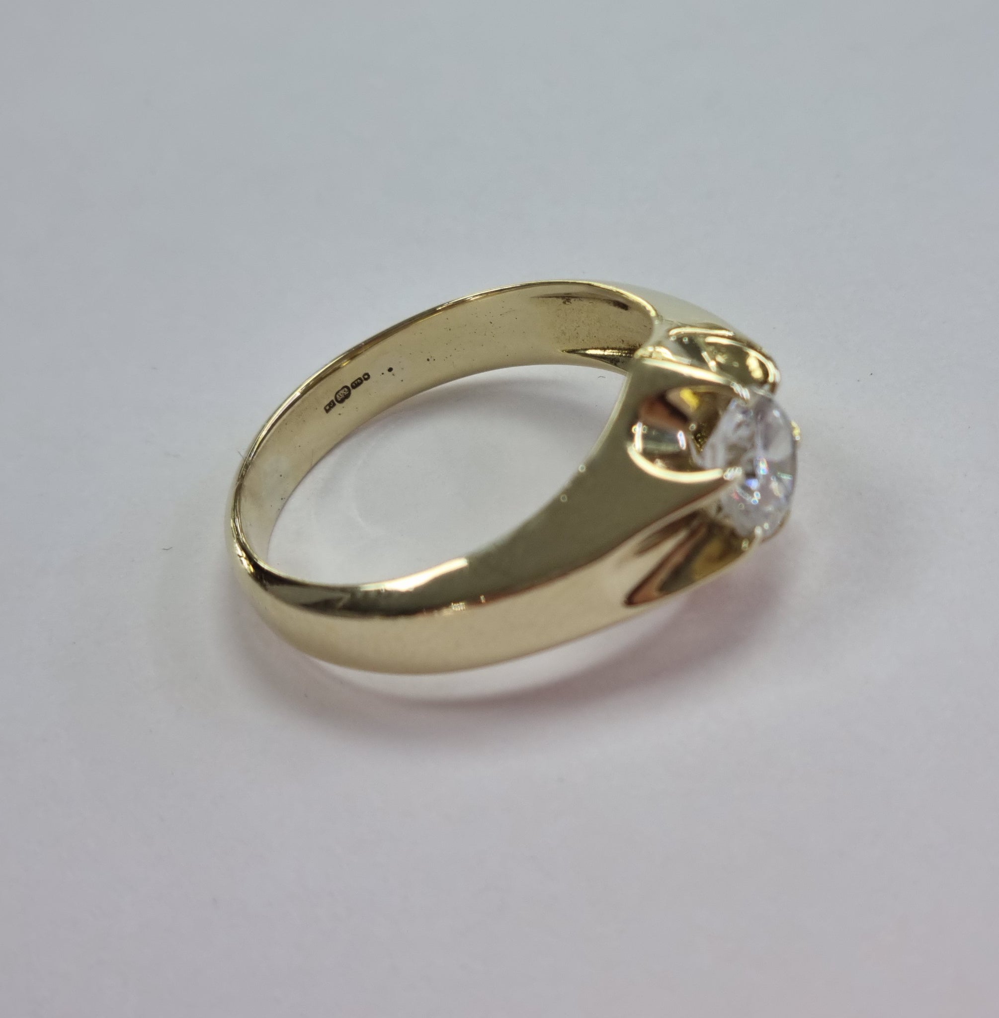 9ct gold ring, size S 1/2. Cz stone. Comes in good condition and weighs 4.56grams in total.
