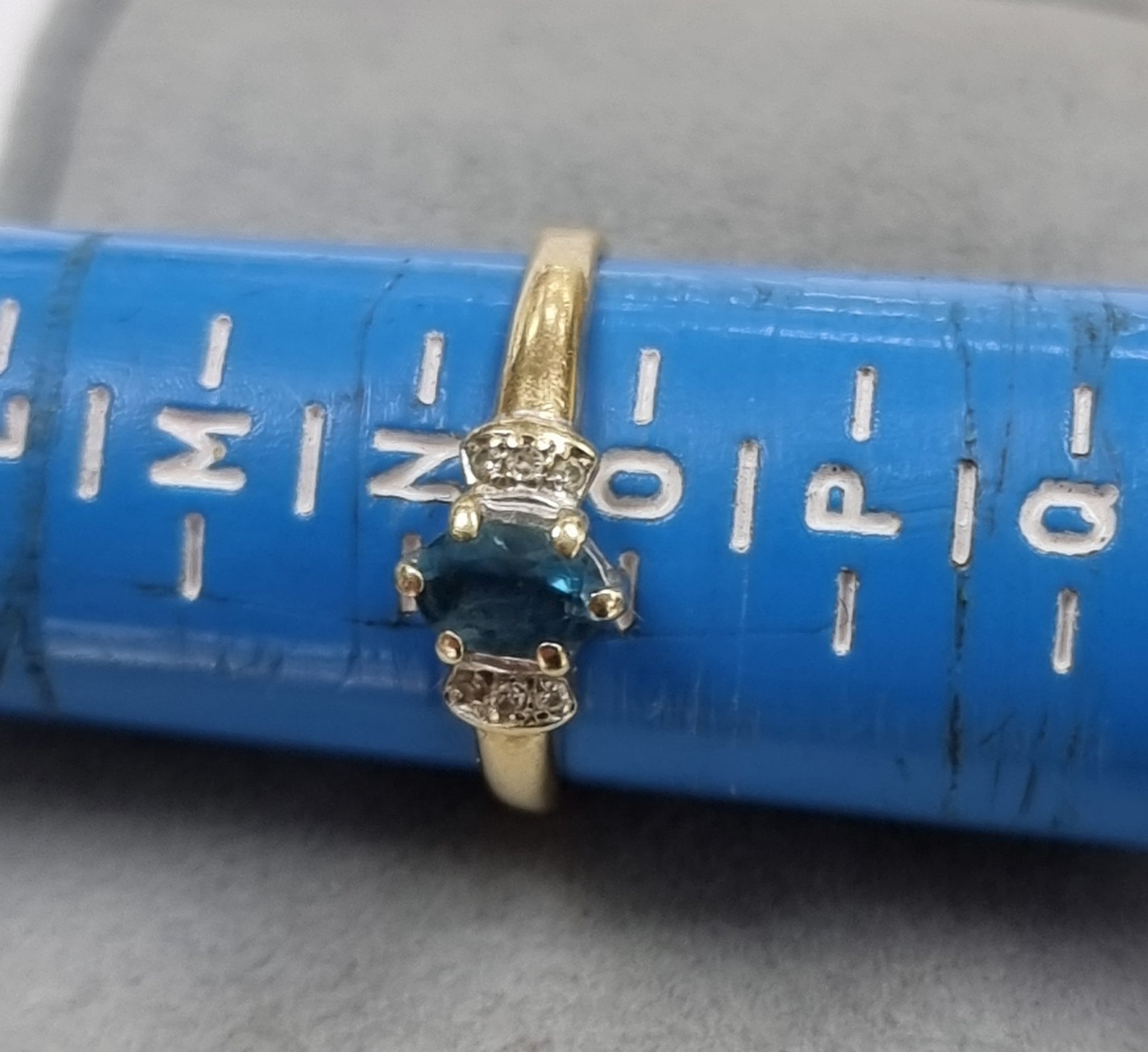 A lovely 9ct Gold Ring Daimond/Blue Topaz Size N1/2 weighing 1.84 grams