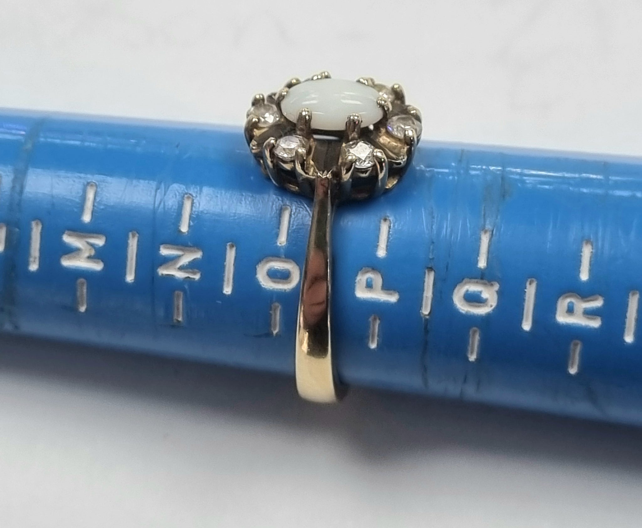 A very nice 9ct ring in a size "O1/2" weighing 3.42 grams. with an opal surrounded by clear stones