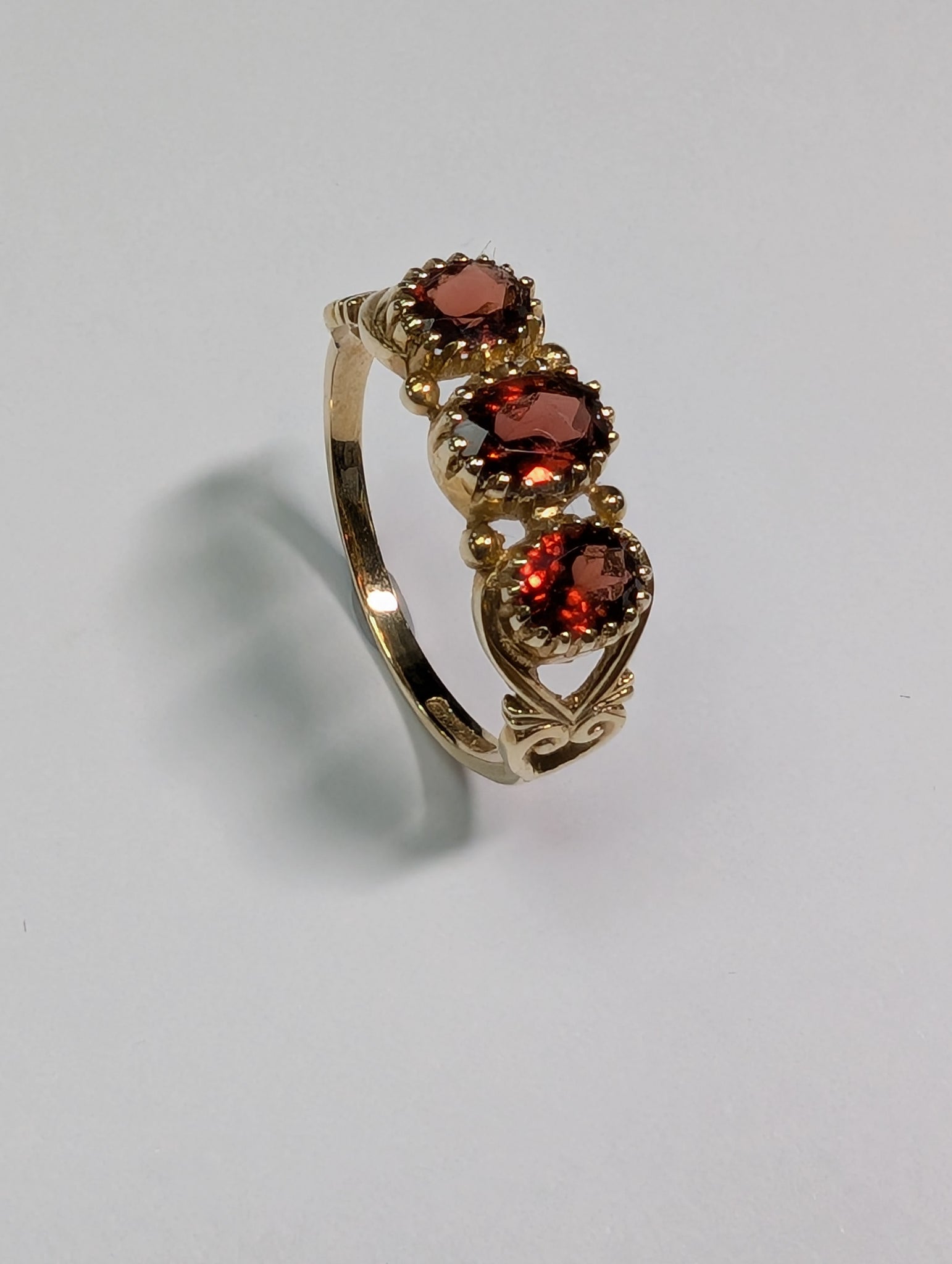 HERE WE HAVE A 9CT GOLD RING WITH RED STONES. THIS RING IS A SIZE O 1/2 WITH A TOTAL WEIGHT OF 1.88G. COMES UNBOXED AND ON GOOD CONDITION. ****** FOR ANY QUERIES PLEASE CONTACT OUR PRESTON STORE DIRECTLY MON-SAT AT 01772 204889.