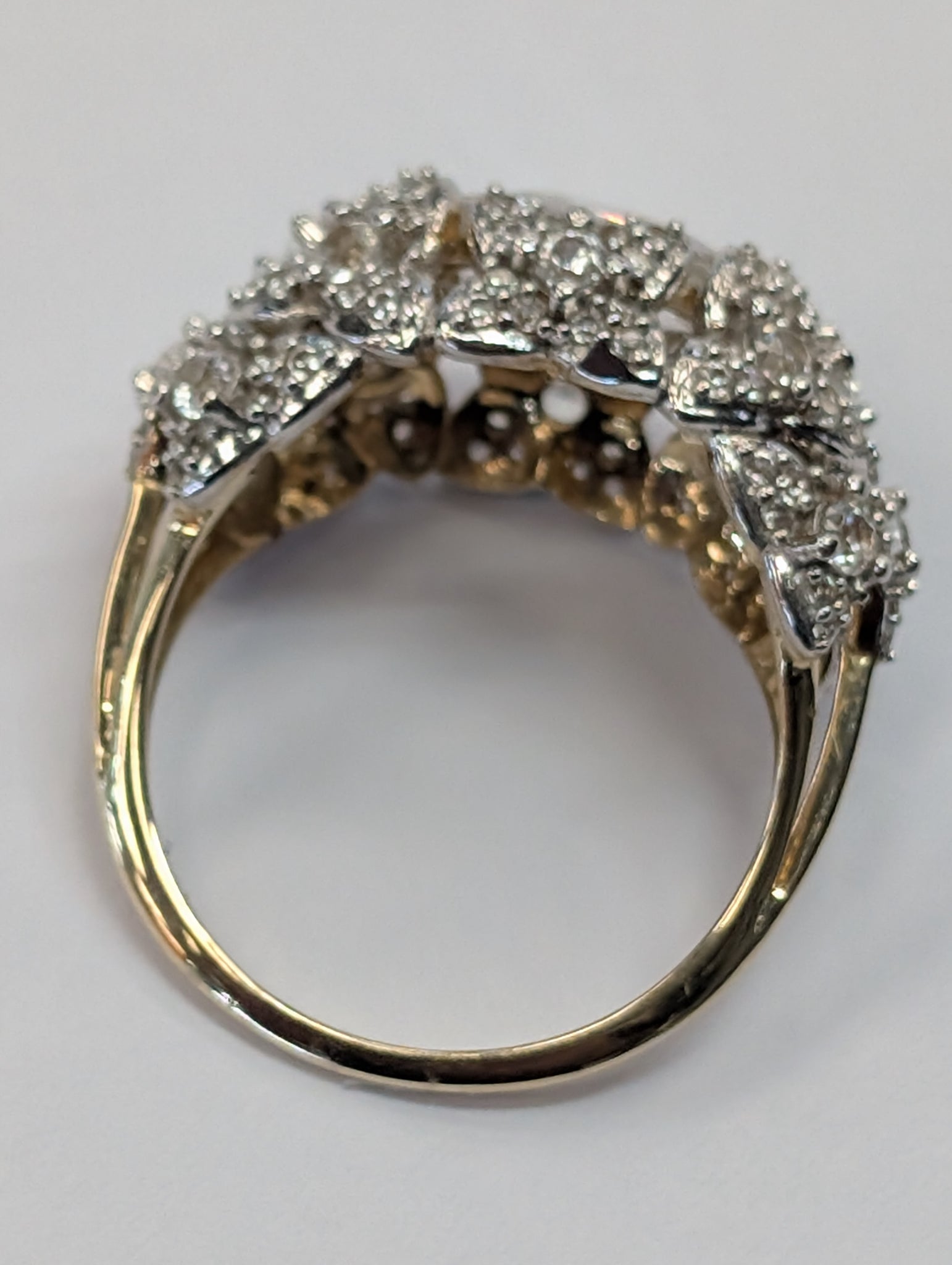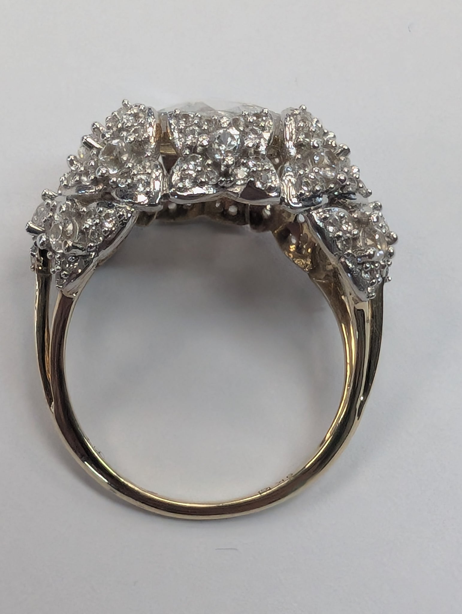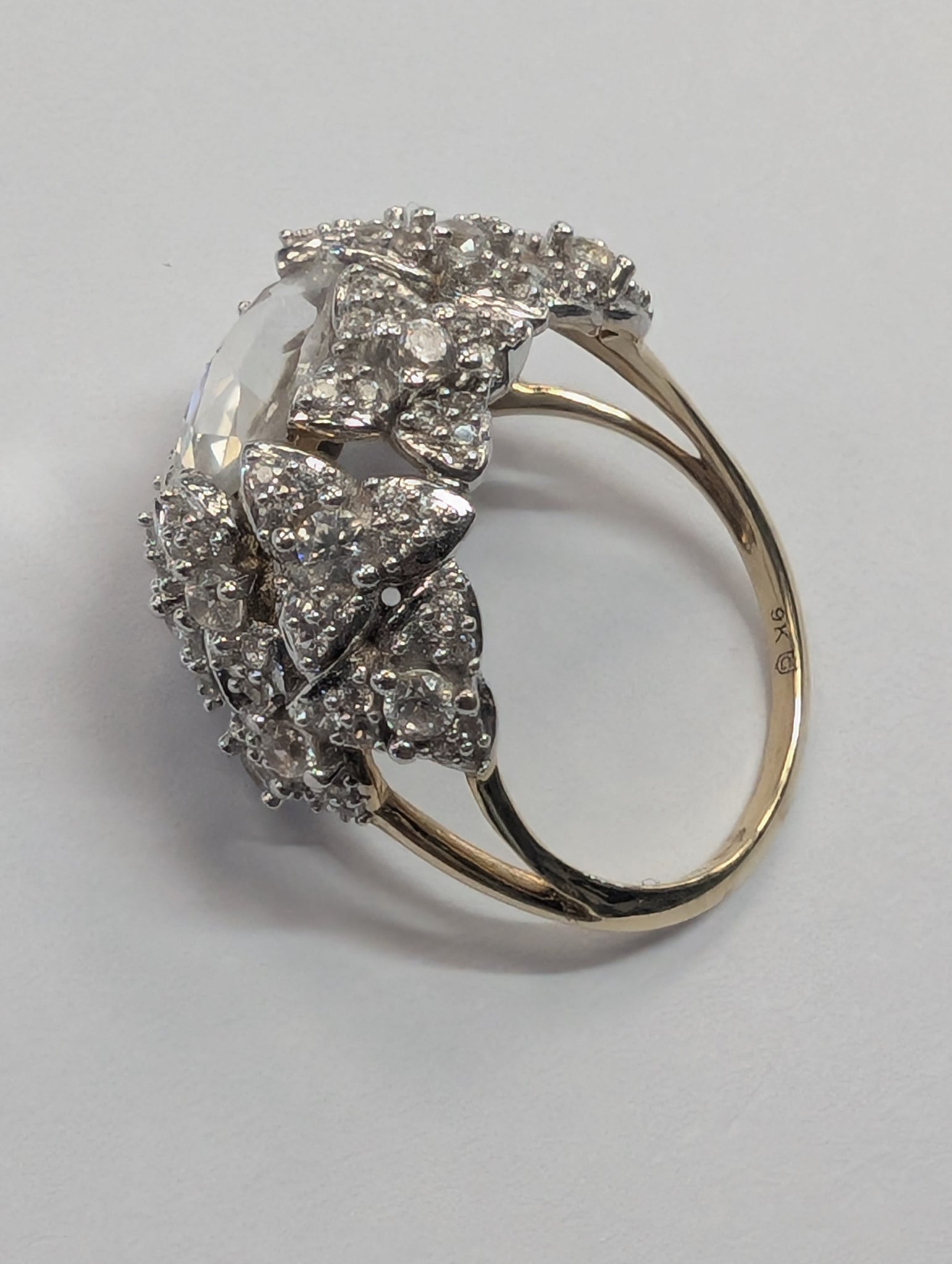 A 9ct gold ring in good condition with a cluster of white gold and cz stones. The ring weighs 4.5 grams and is a size L 1/2
