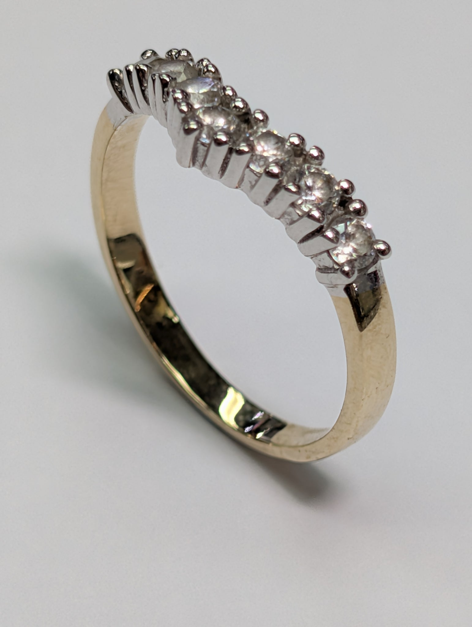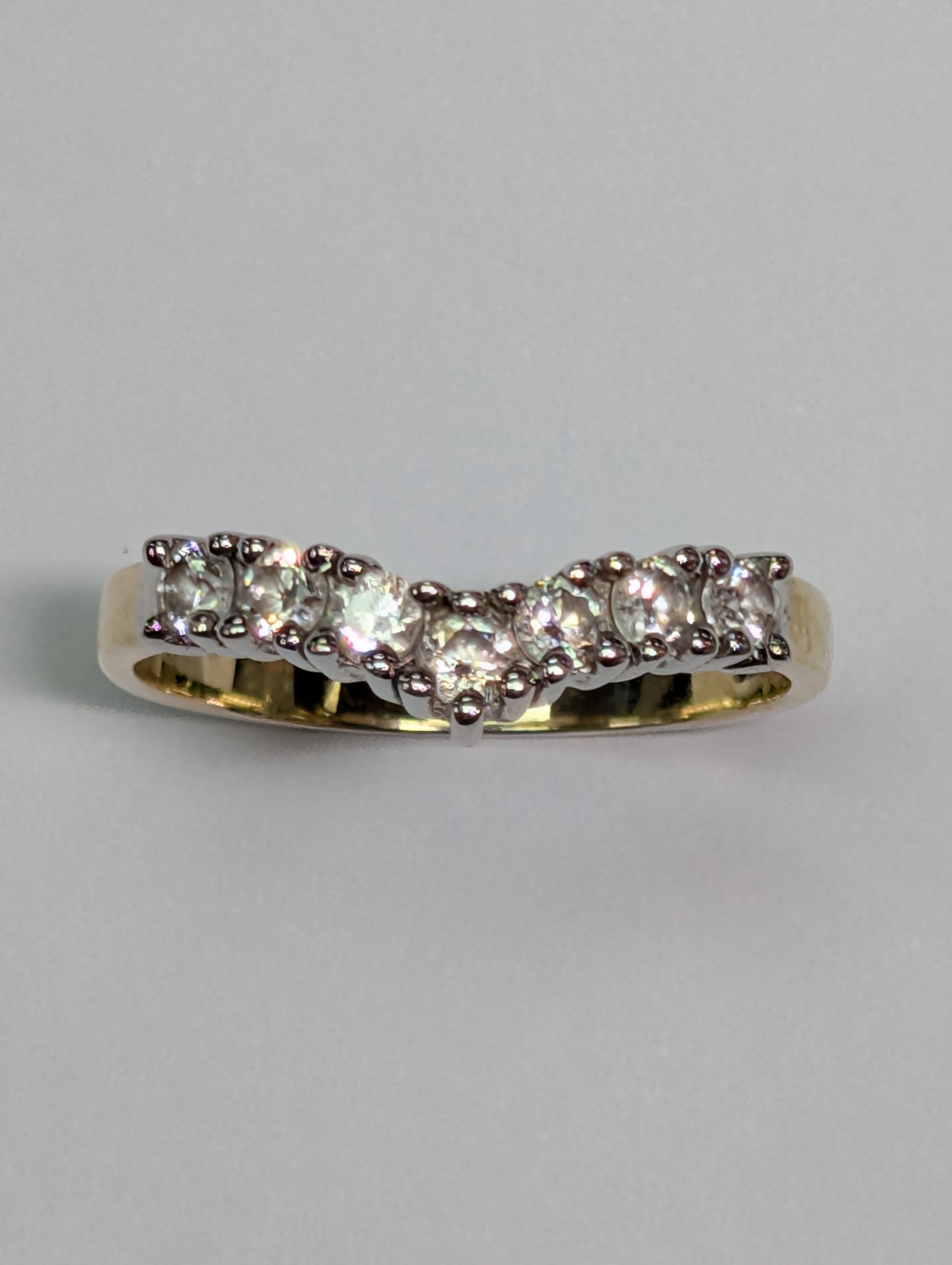 HERE WE HAVE A 9CT GOLD WISHBONE RING WITH CZ STONES. THIS WEIGHS 2.06G AND A SIZE O. ** FOR ANY QUERIES PLEASE CALL OUR PRESTON STORE DIRECT MON-SAT 01772 204889