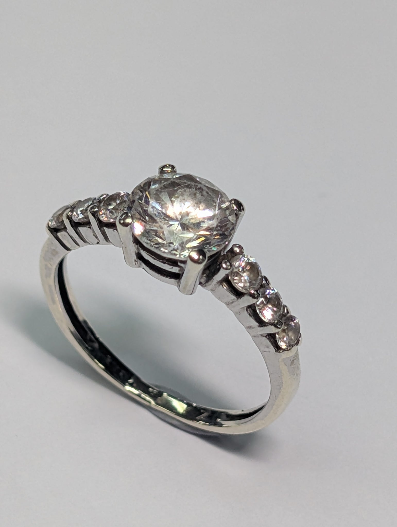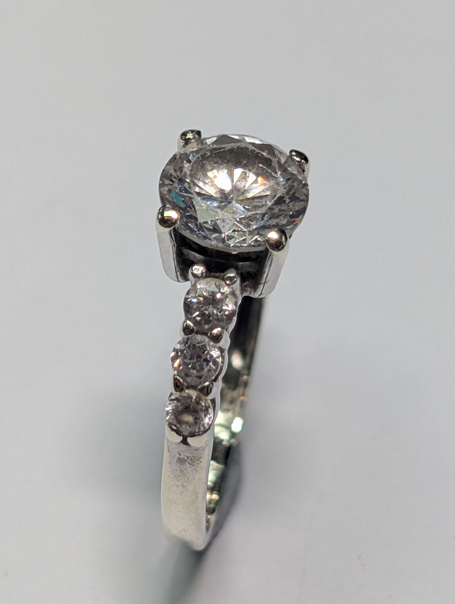 HERE WE HAVE A 9CT WHITE GOLD RING WITH CZ STONES. THIS IS A SIZE N AND WEIGHS 2.30G. ****** FOR ANY QUERIES PLEASE CONTACT OUR PRESTON STORE DIRECTLY MON-SAT AT 01772 204889.
