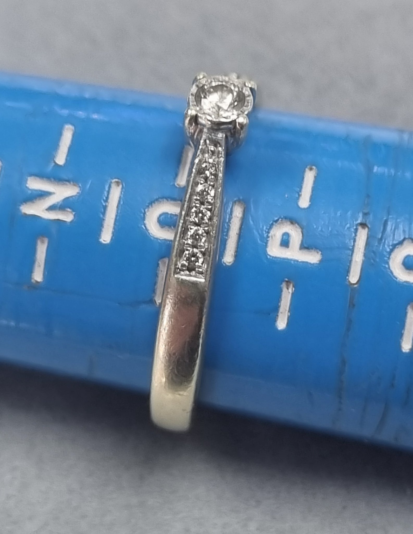 9ct white gold diamond ring in a size "O" weighing 2.5 grams 0.10ct